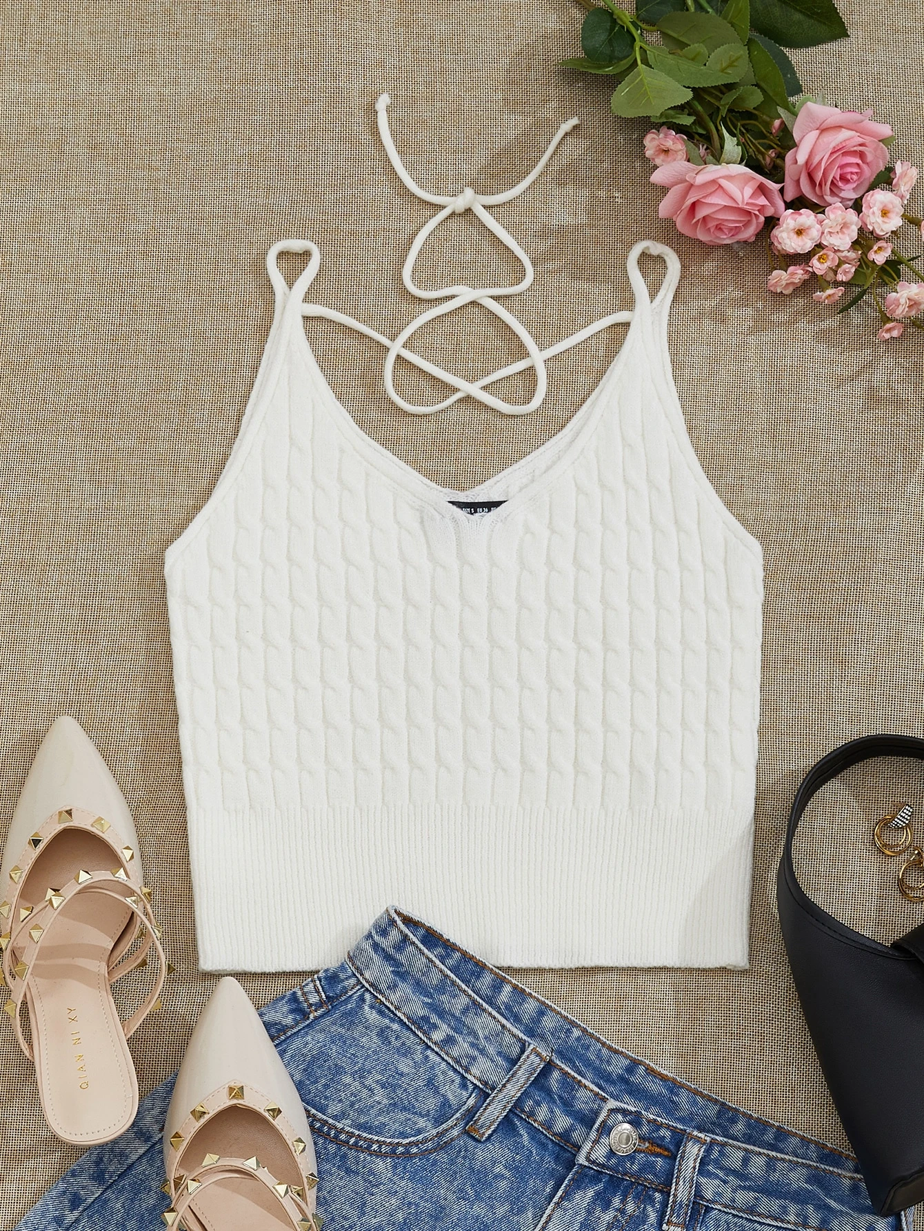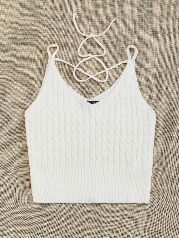 Top tejido de cable con nudo