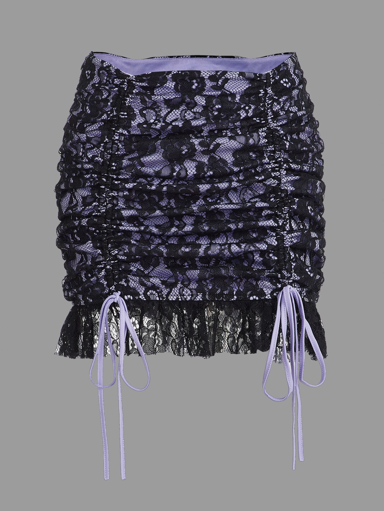 Falda con encaje con cordón delantero bajo con fruncido