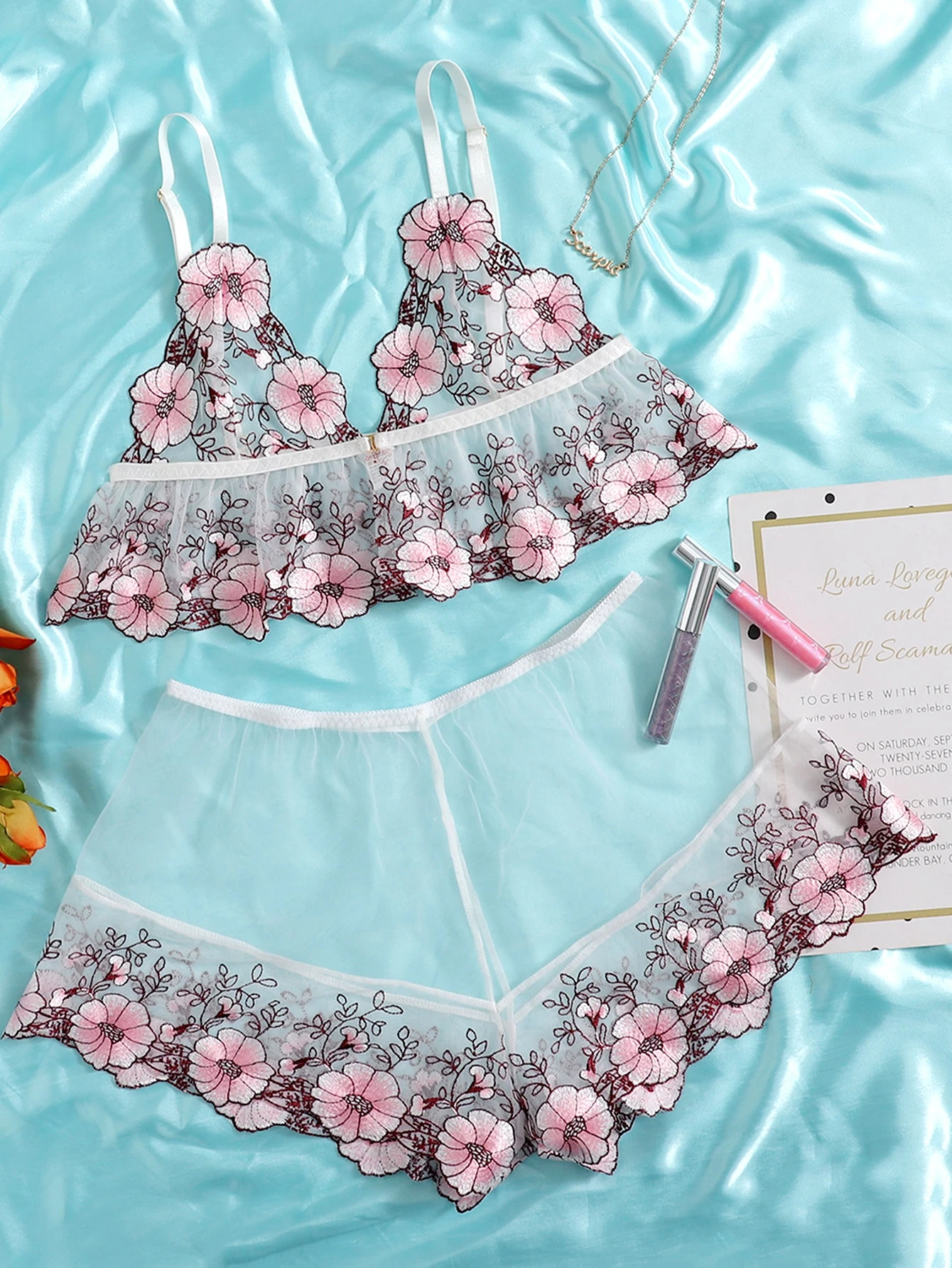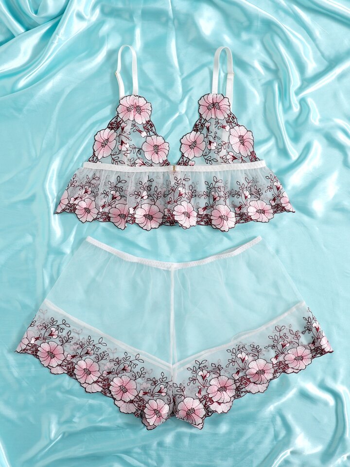 Conjunto De Lencería Transparente Con Encaje Floral