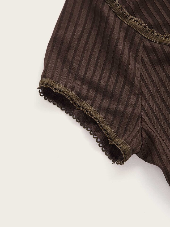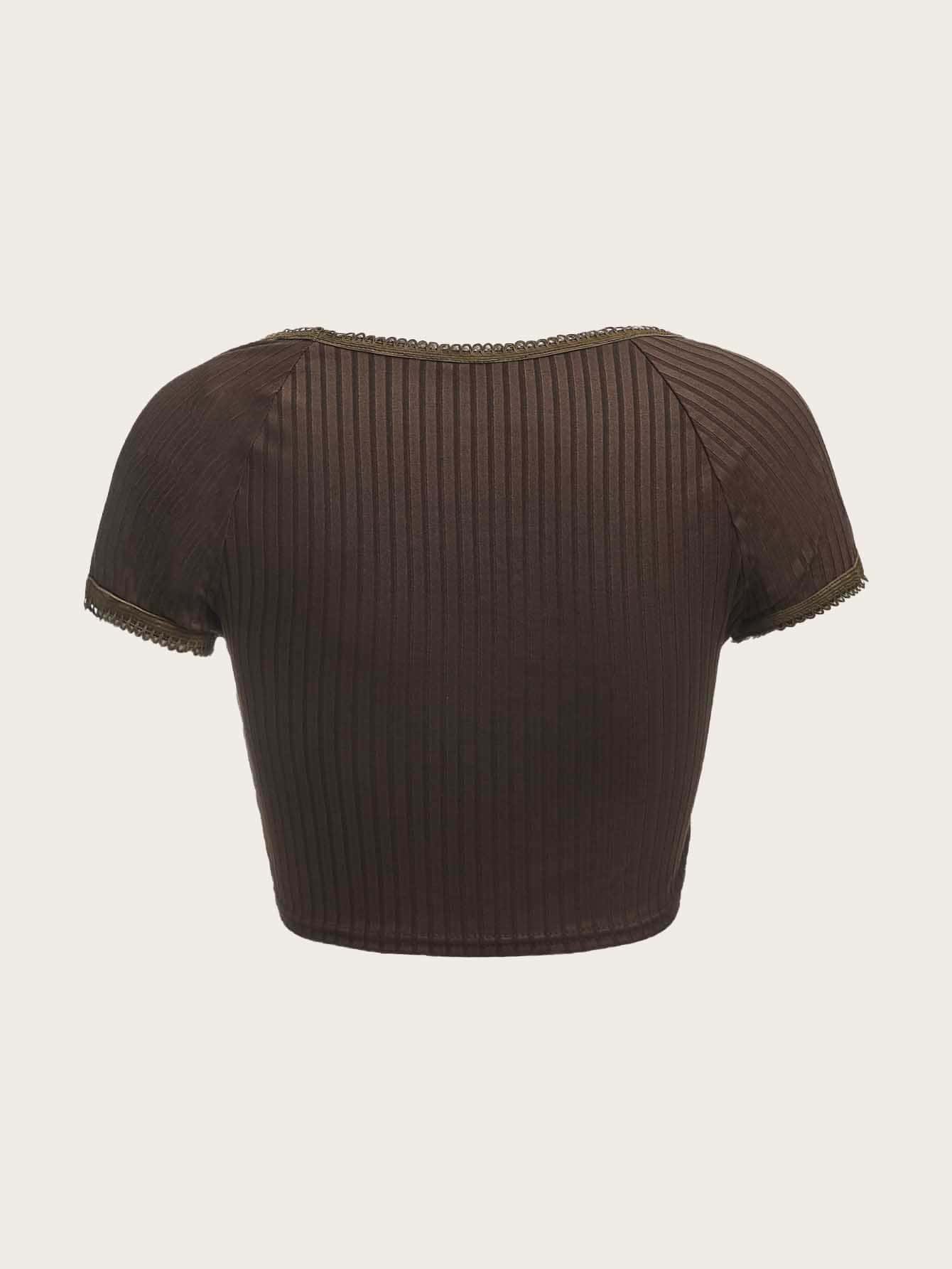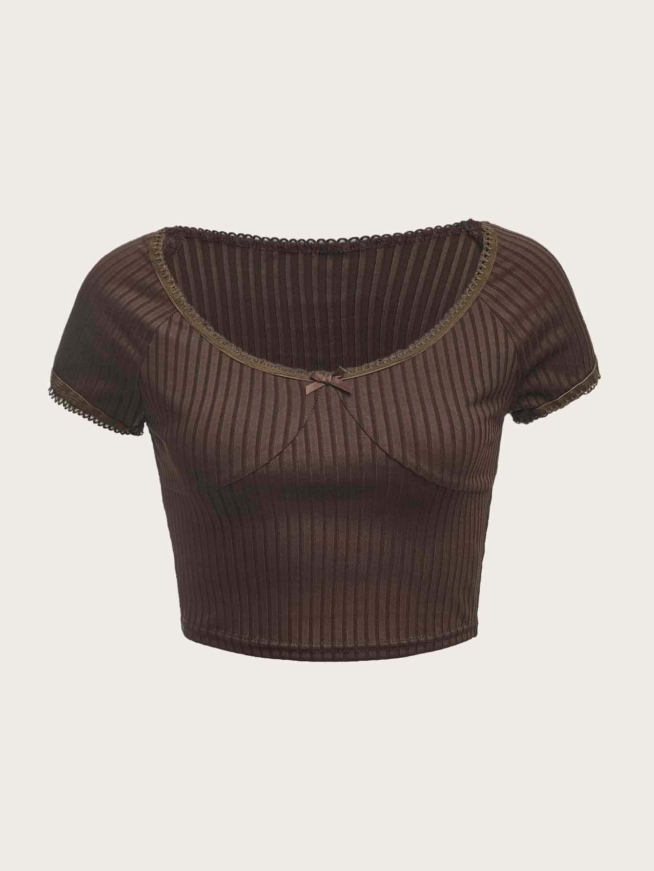 Camiseta corta ribete con encaje con diseño de lazo de canalé