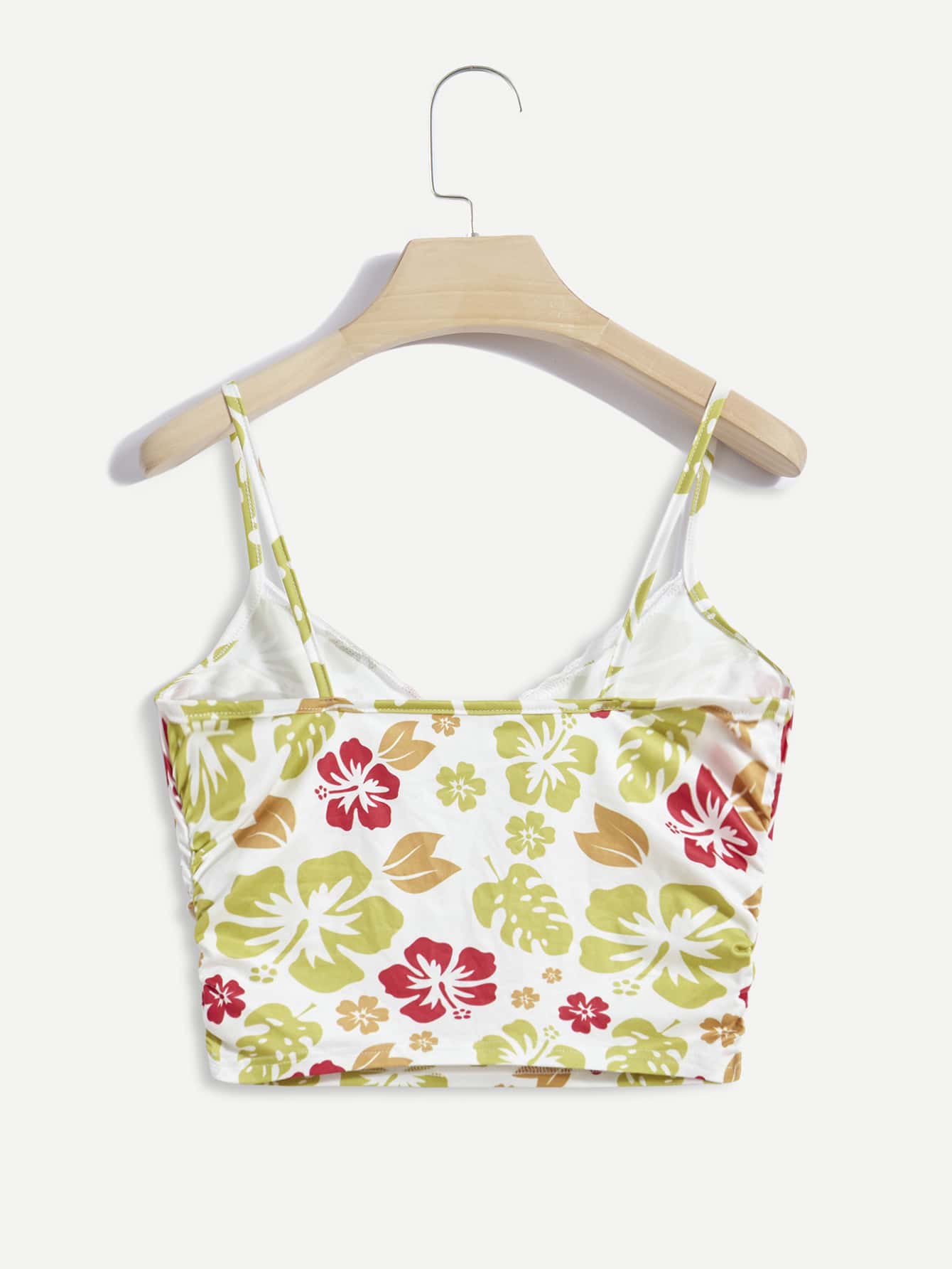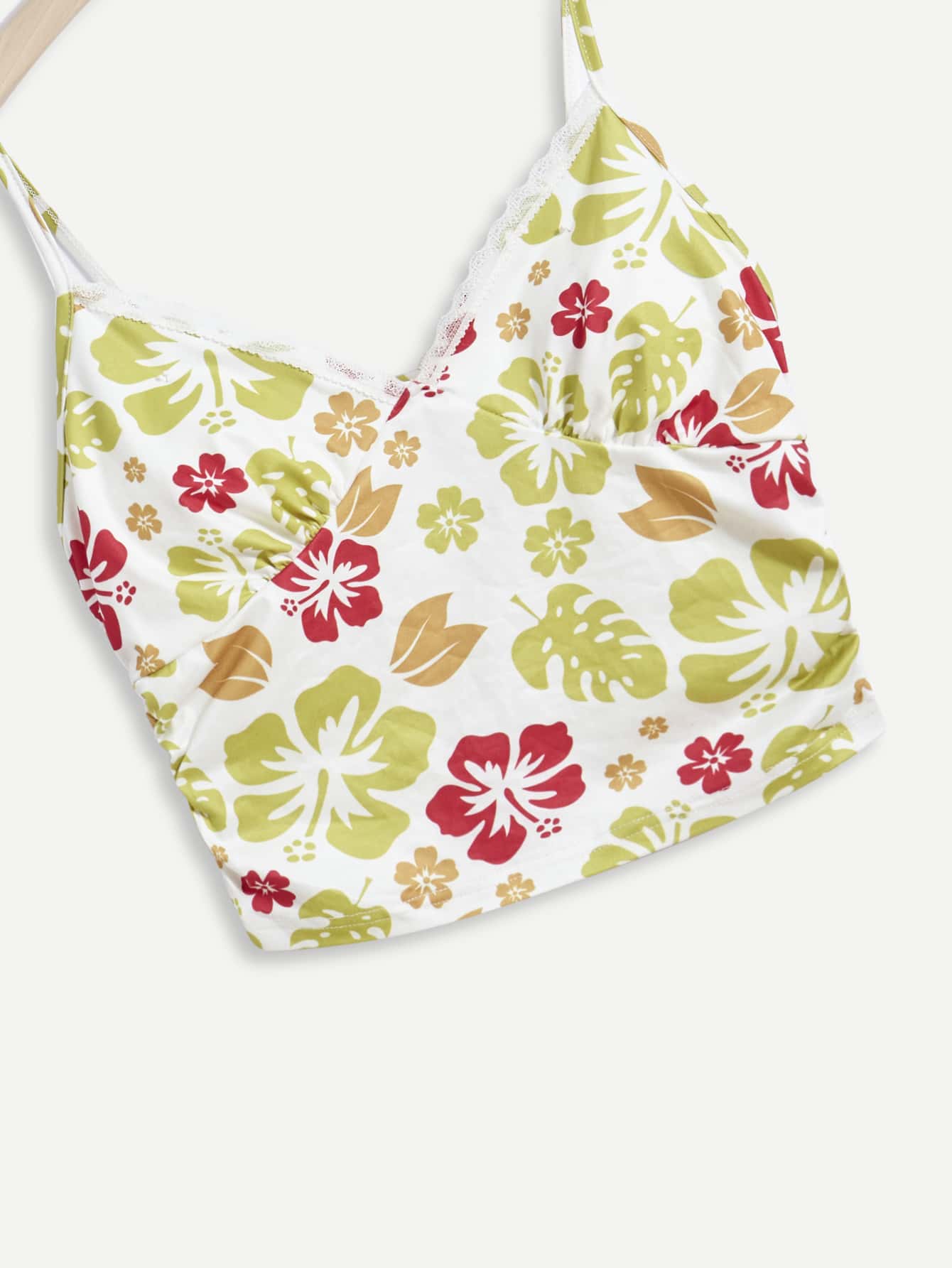 Cami corto ribete con encaje con estampado floral