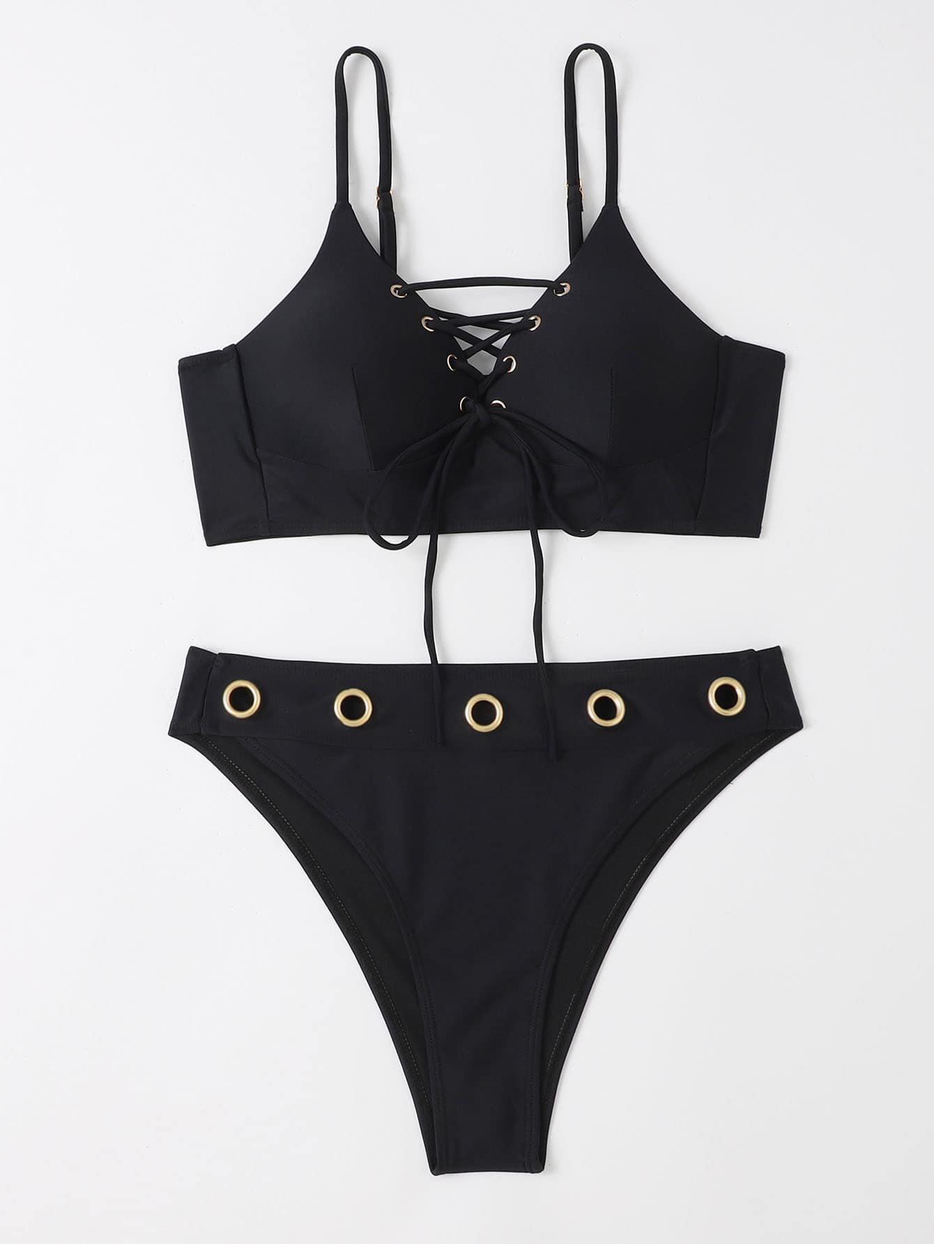 Conjunto de bikini con cordones delanteros para verano en la playa