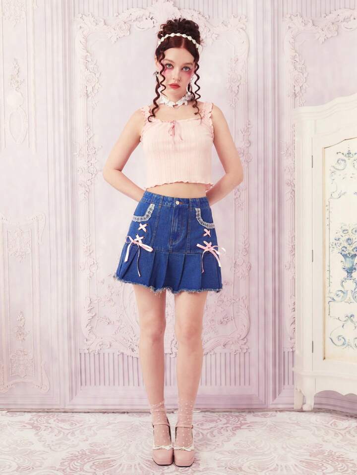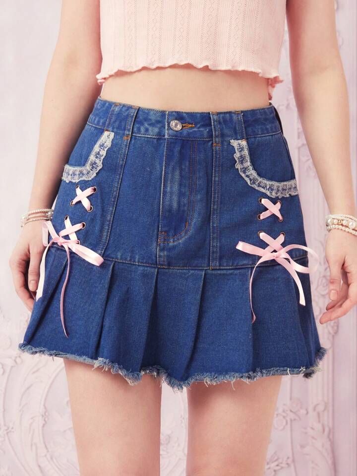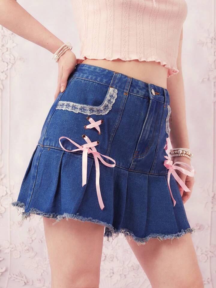 Falda en mezclilla con cordón bajo crudo