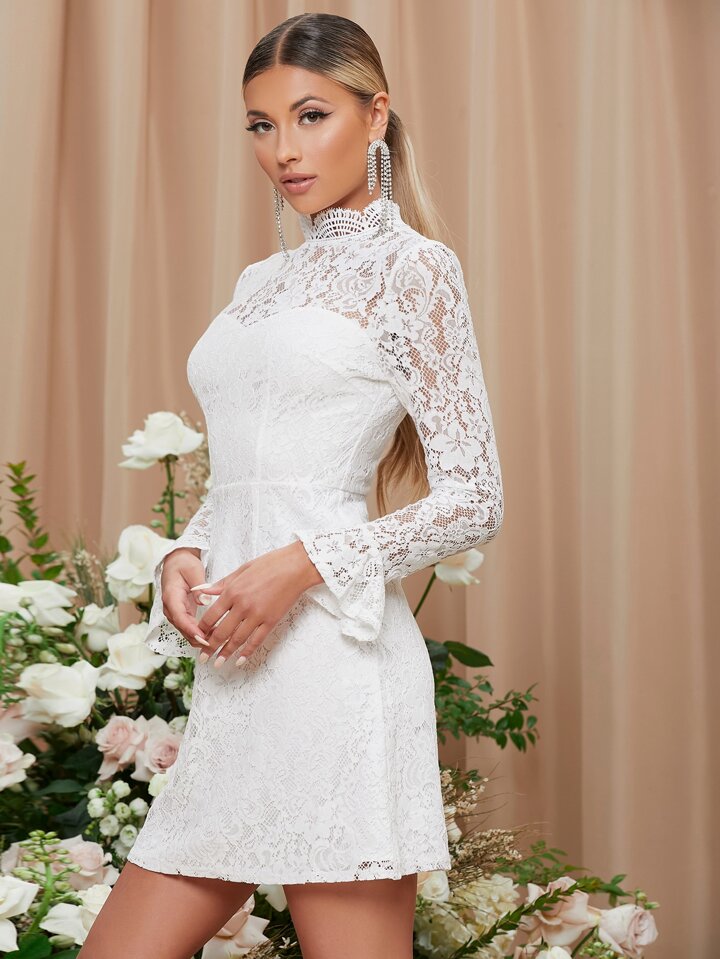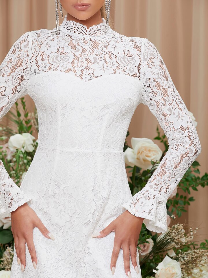 Vestido de manga con volante de yugo con encaje