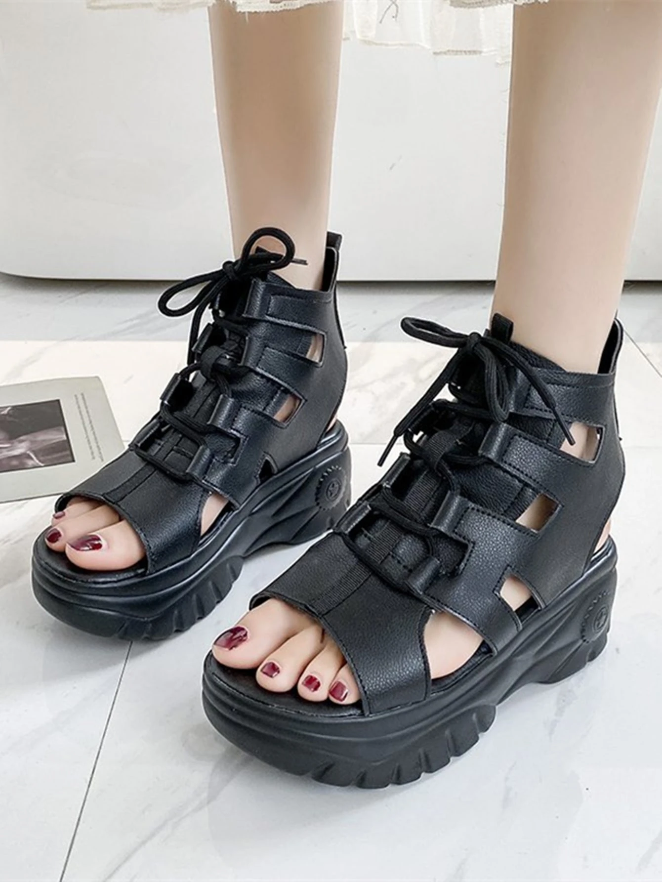 Sandalias de plataforma con cordón delantero