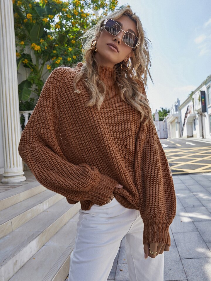 Suéter holgado de punto grueso con mangas farol para otoño e invierno