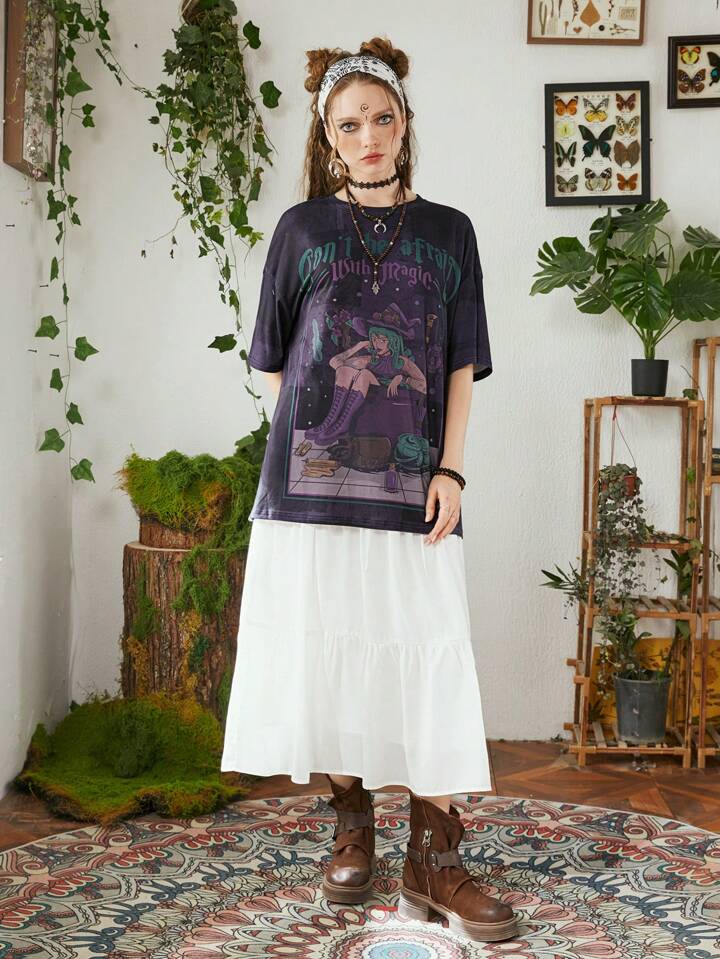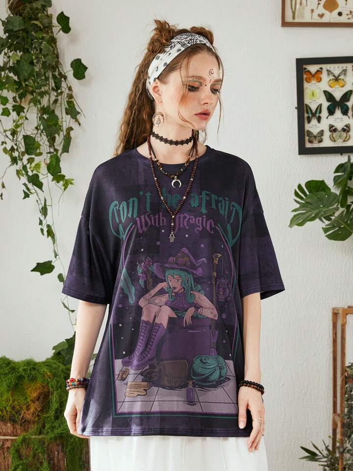 Lasthopeparty Fairycore Camiseta de hombros caídos con estampado de figura