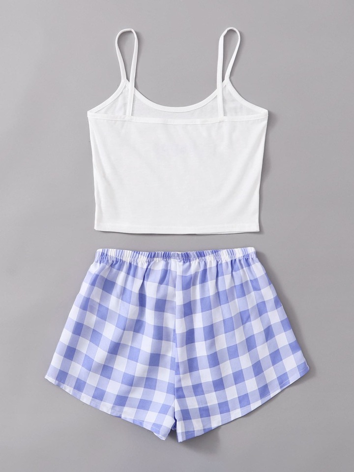 Conjunto de pijama de tirantes con cordón delantero con estampado de letra y guingán