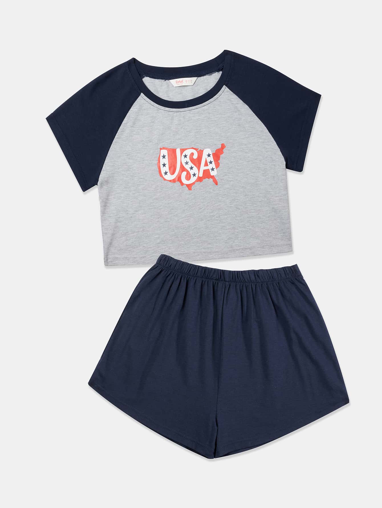 Camiseta tipo béisbol con letra & Shorts unicolor