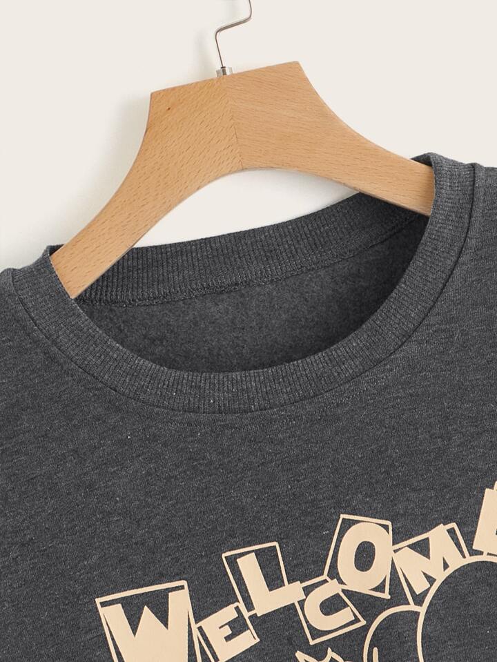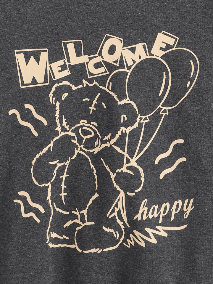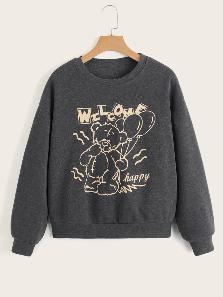 Sudadera con letra con estampado de oso de dibujos animados de hombros caídos