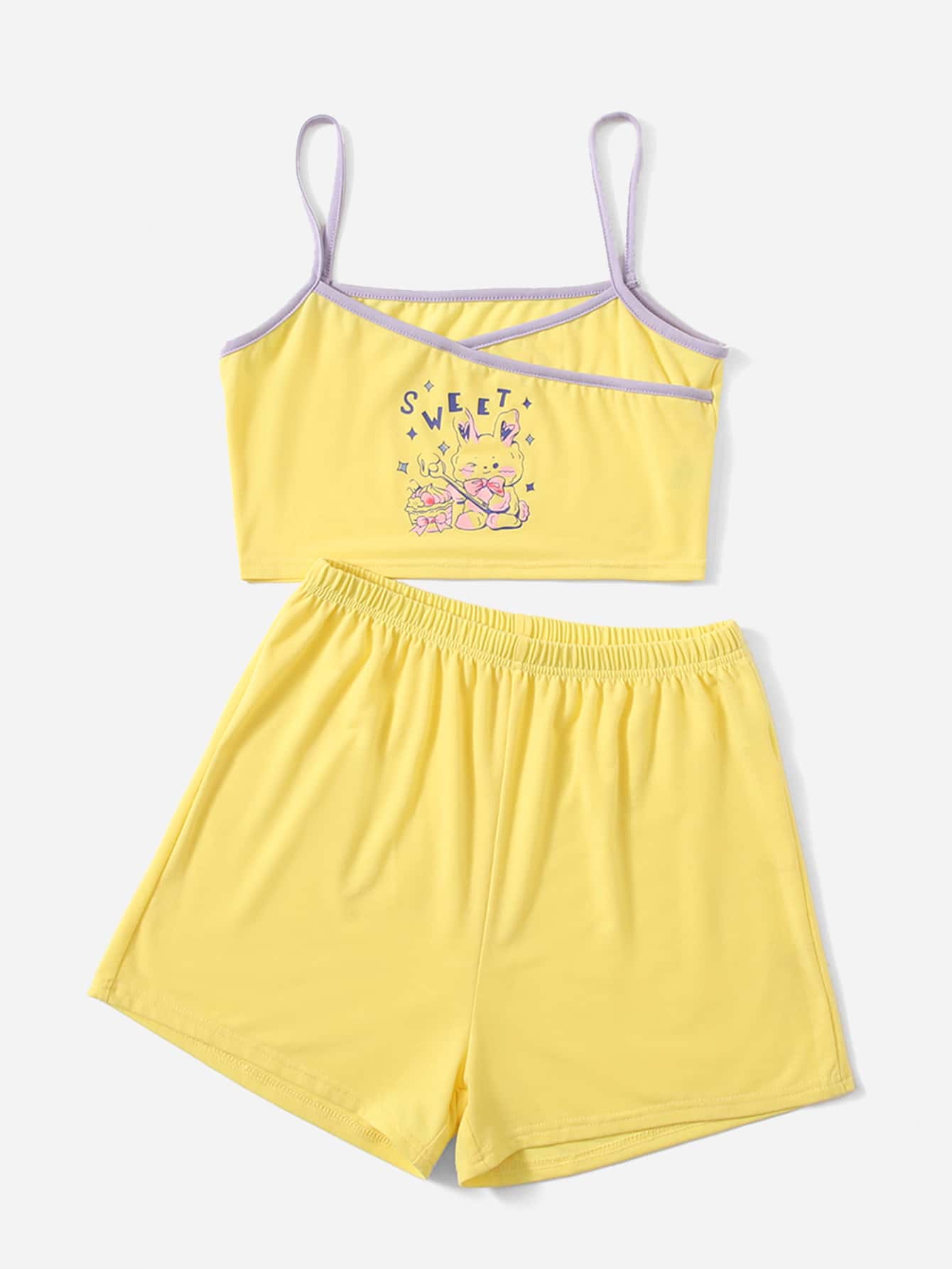 Conjunto de pijama con letra con estampado de dibujos animados unido en contraste