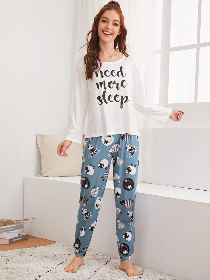Conjunto de pijama con estampado de letra y oveja de dibujos animados