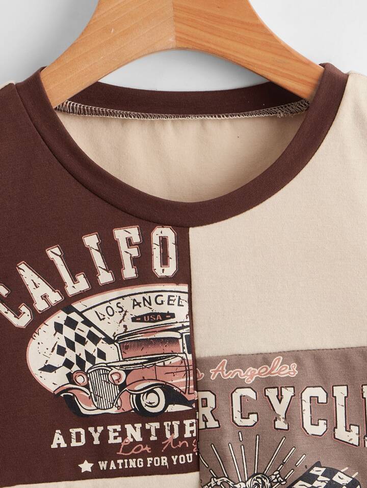 Camiseta corta con letra con estampado de color combinado