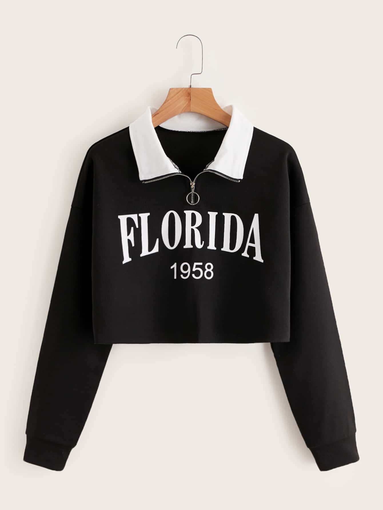 Sudadera corta con letra de cuello en contraste con cremallera