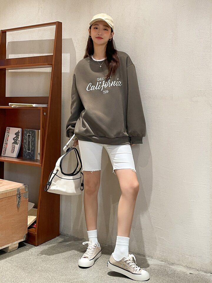 Sudadera con bordado de letra de hombros caídos sin camiseta