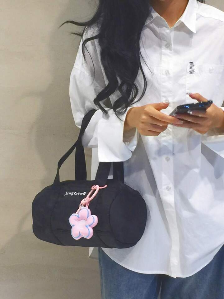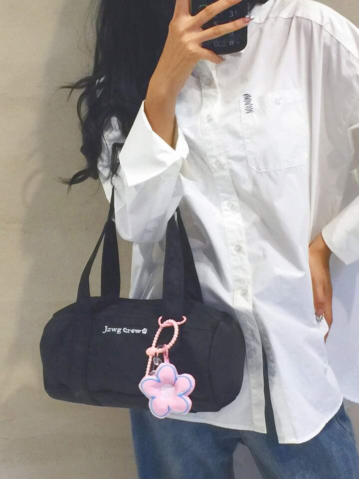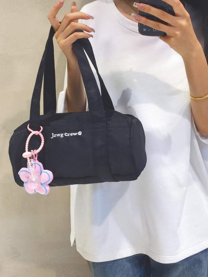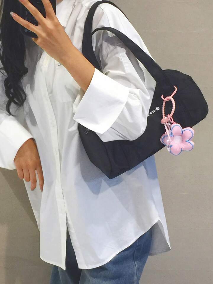 Bolso tote de hombro con bordado de letra con diseño de flor
