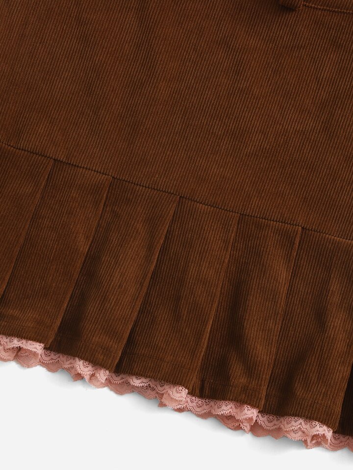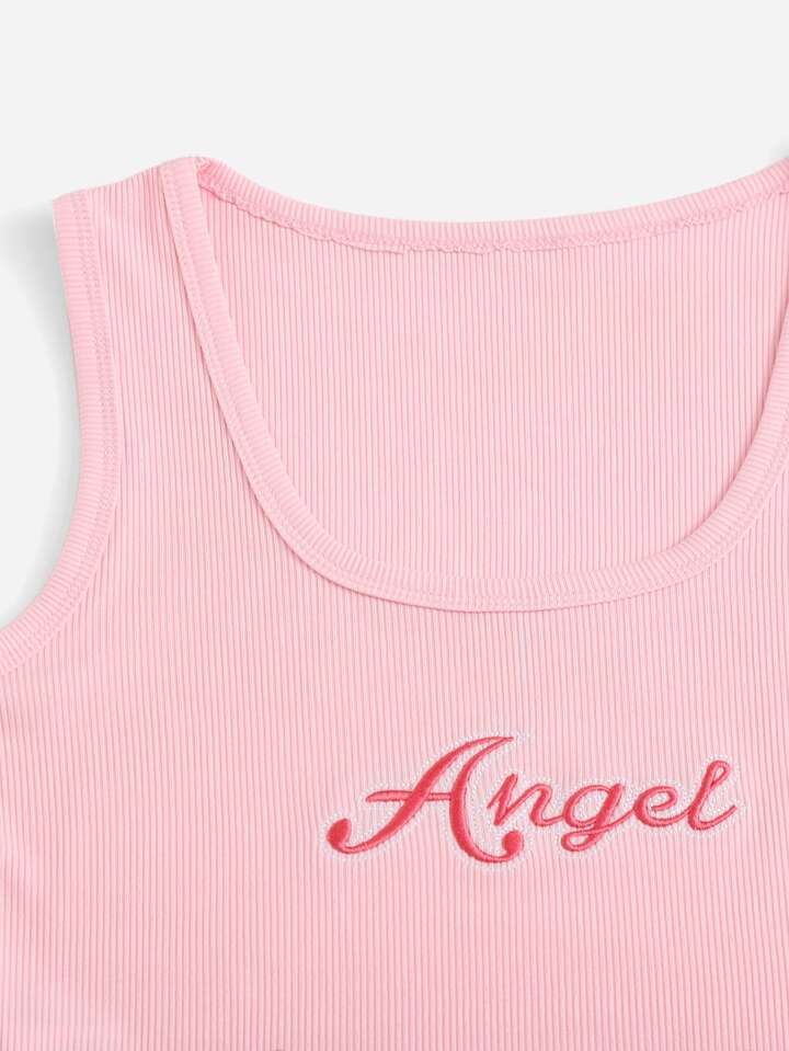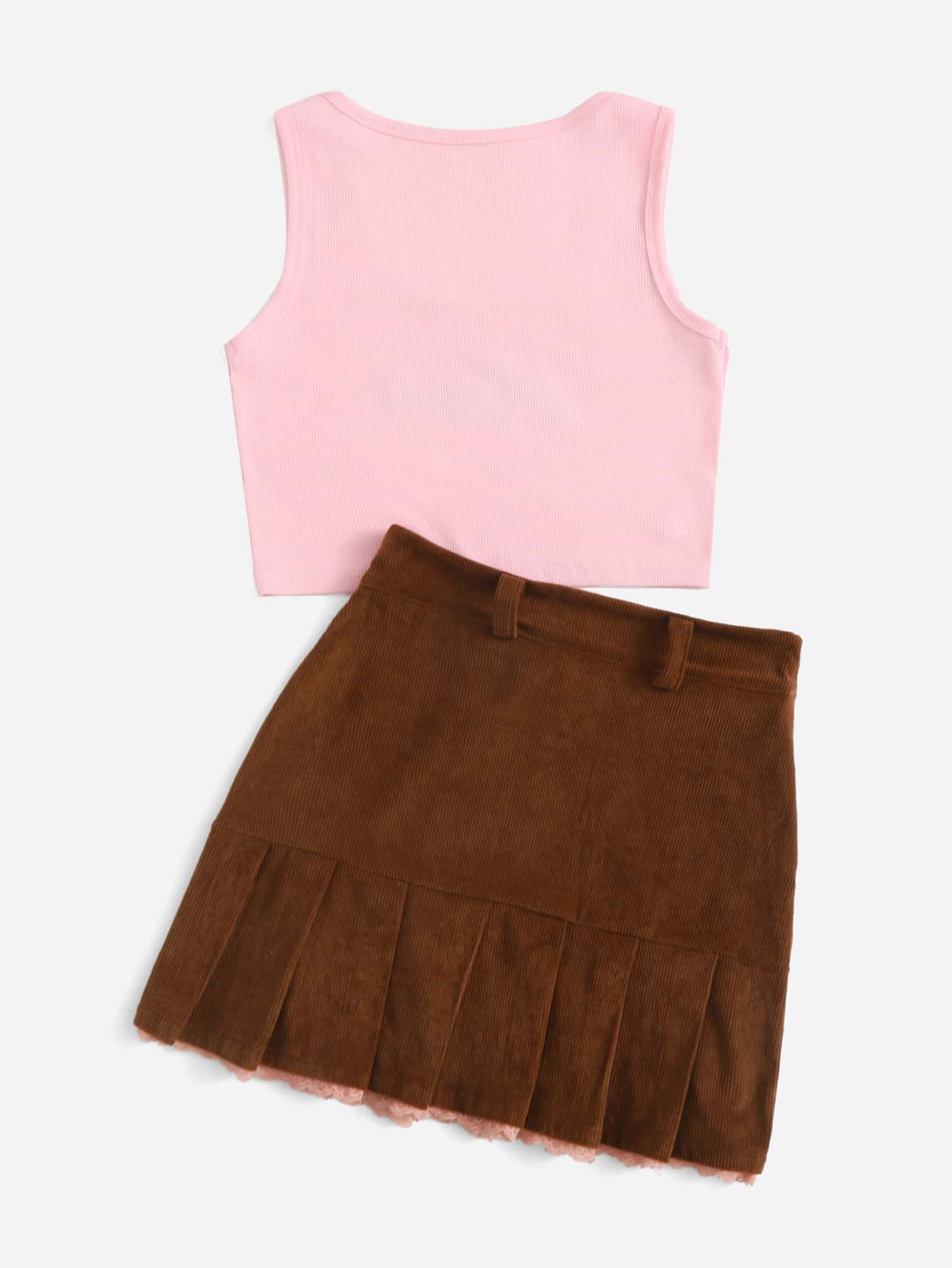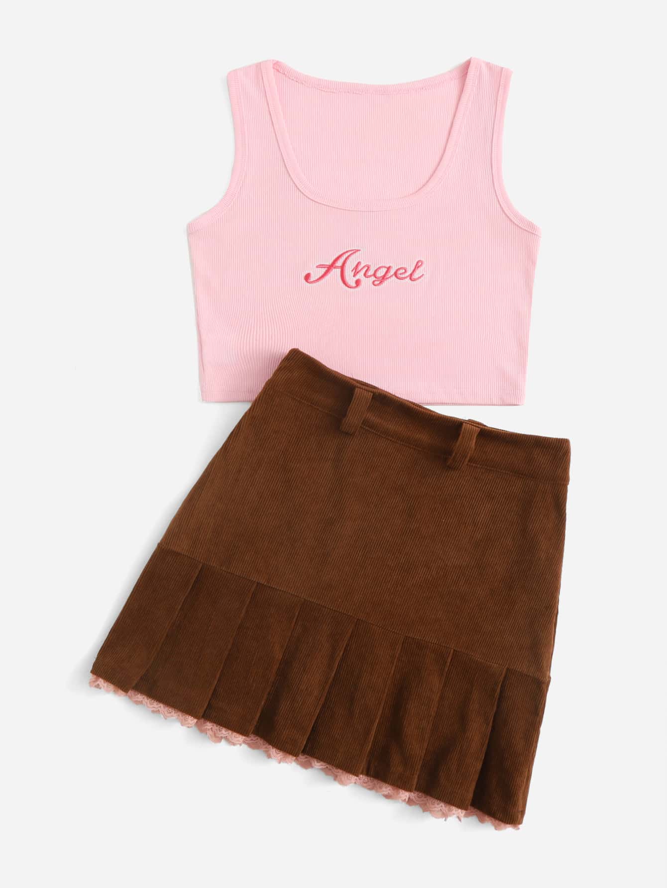 con bordado de letra de canalé Top tank & ribete con encaje de pana Falda