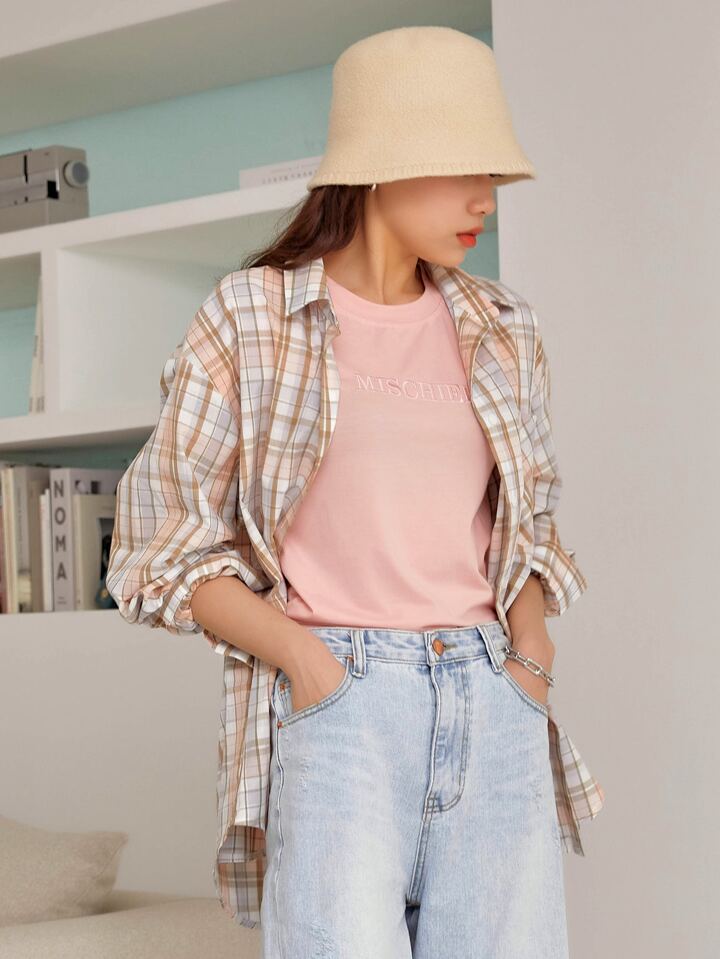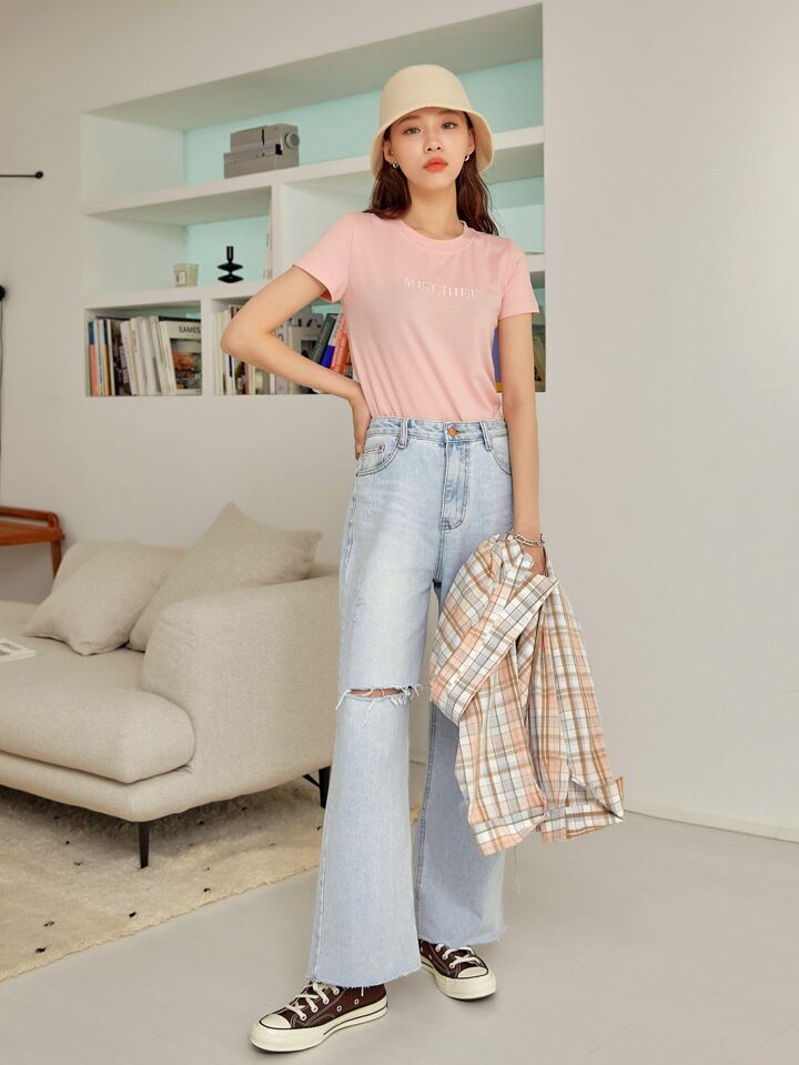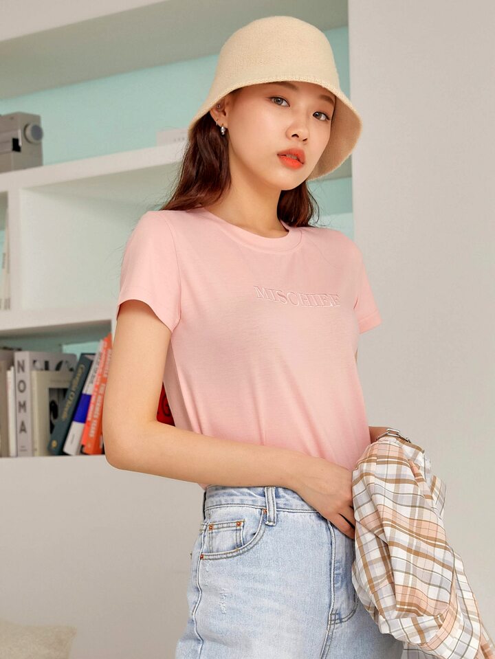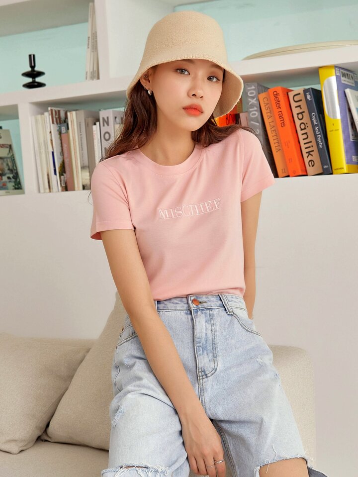 Camiseta De Manga Corta Con Bordado De Letras