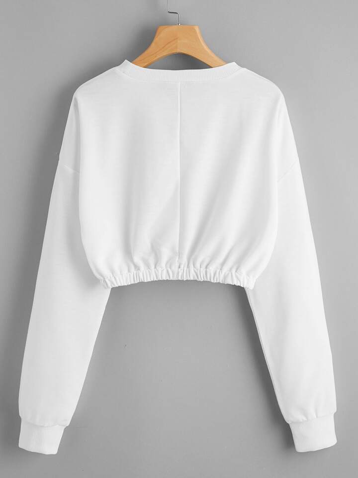Sudadera corta de hombros caídos con estampado de letra