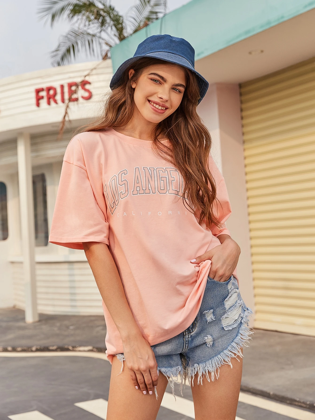 Camiseta rosada amplia con estampado de letra