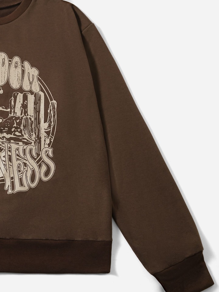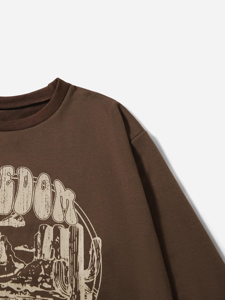 Sudadera con estampado de letra y montaña