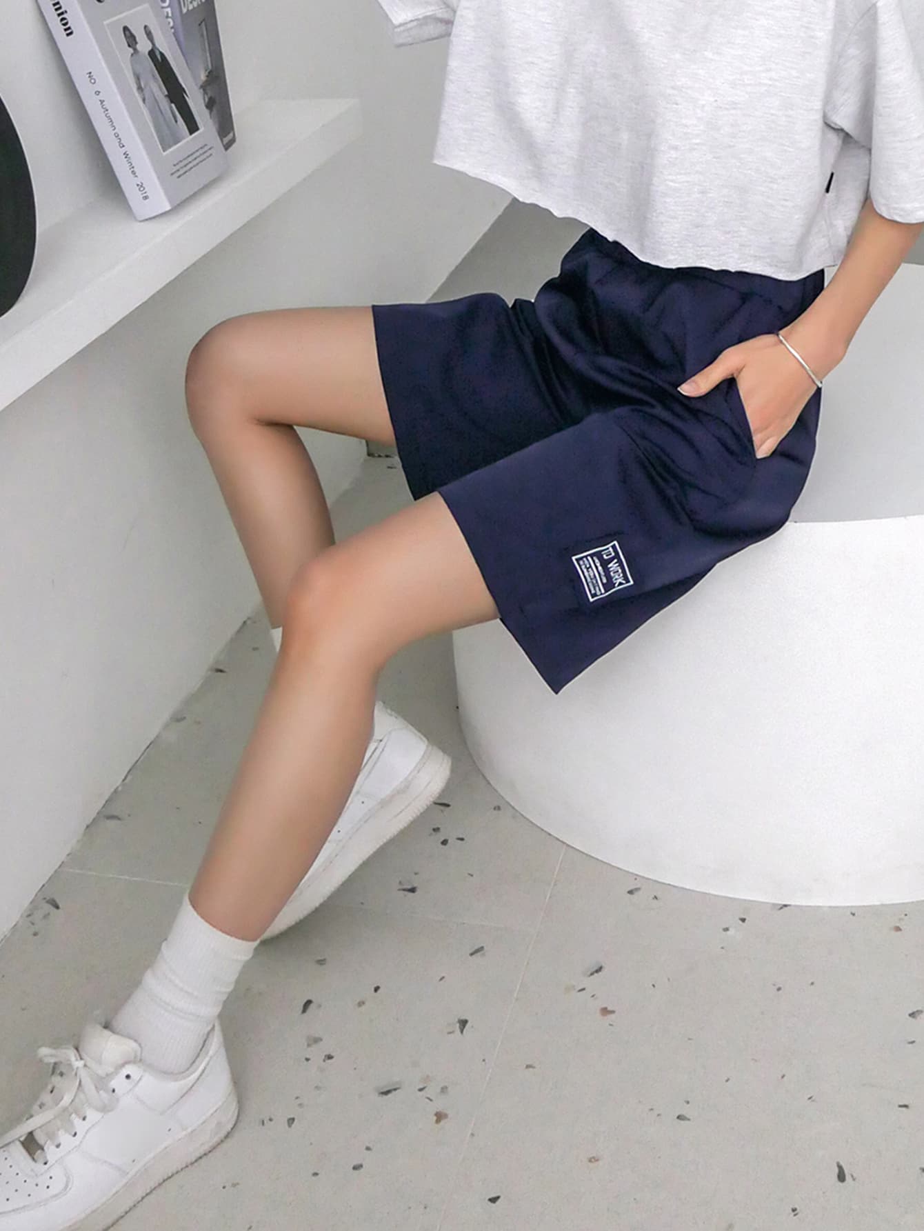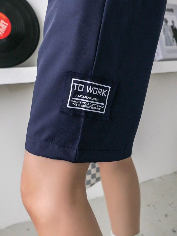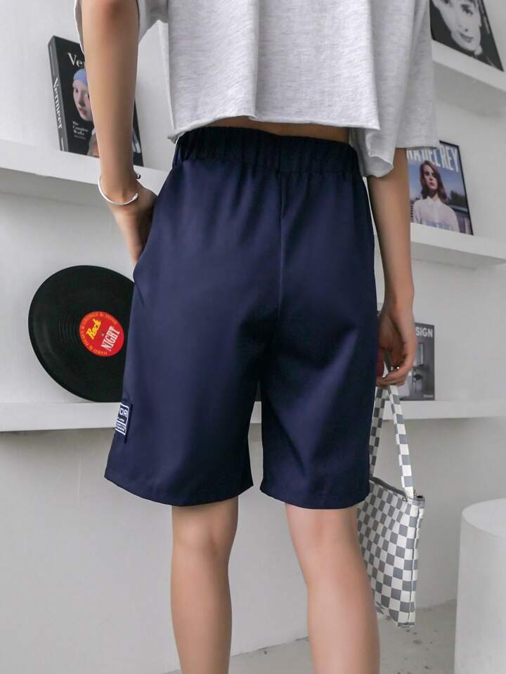 Shorts con parche de letra de cintura elástica