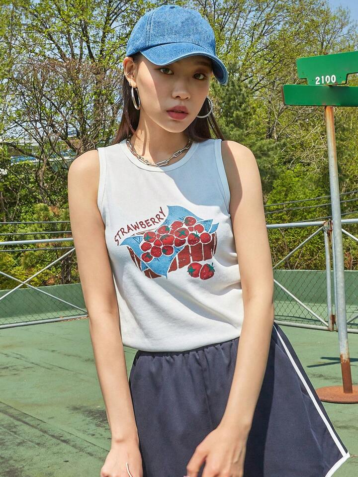 Top Sin Mangas Con Diseño De Letras Y Fresas