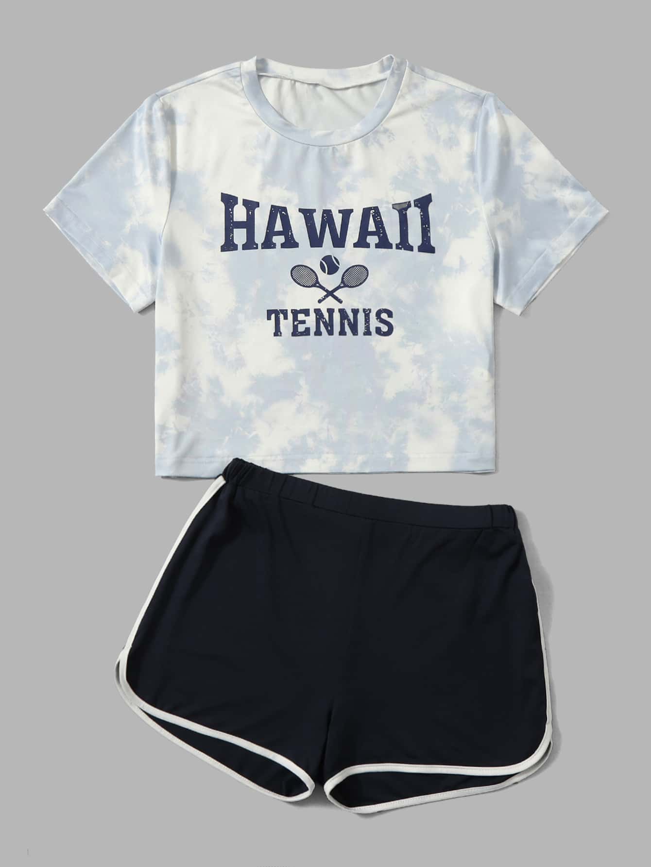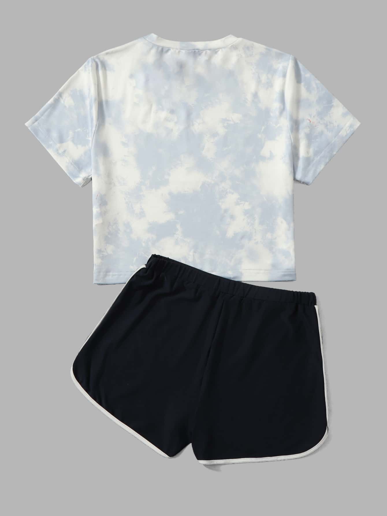 Conjunto de pijama con letra con estampado de tenis de tie dye unido en contraste