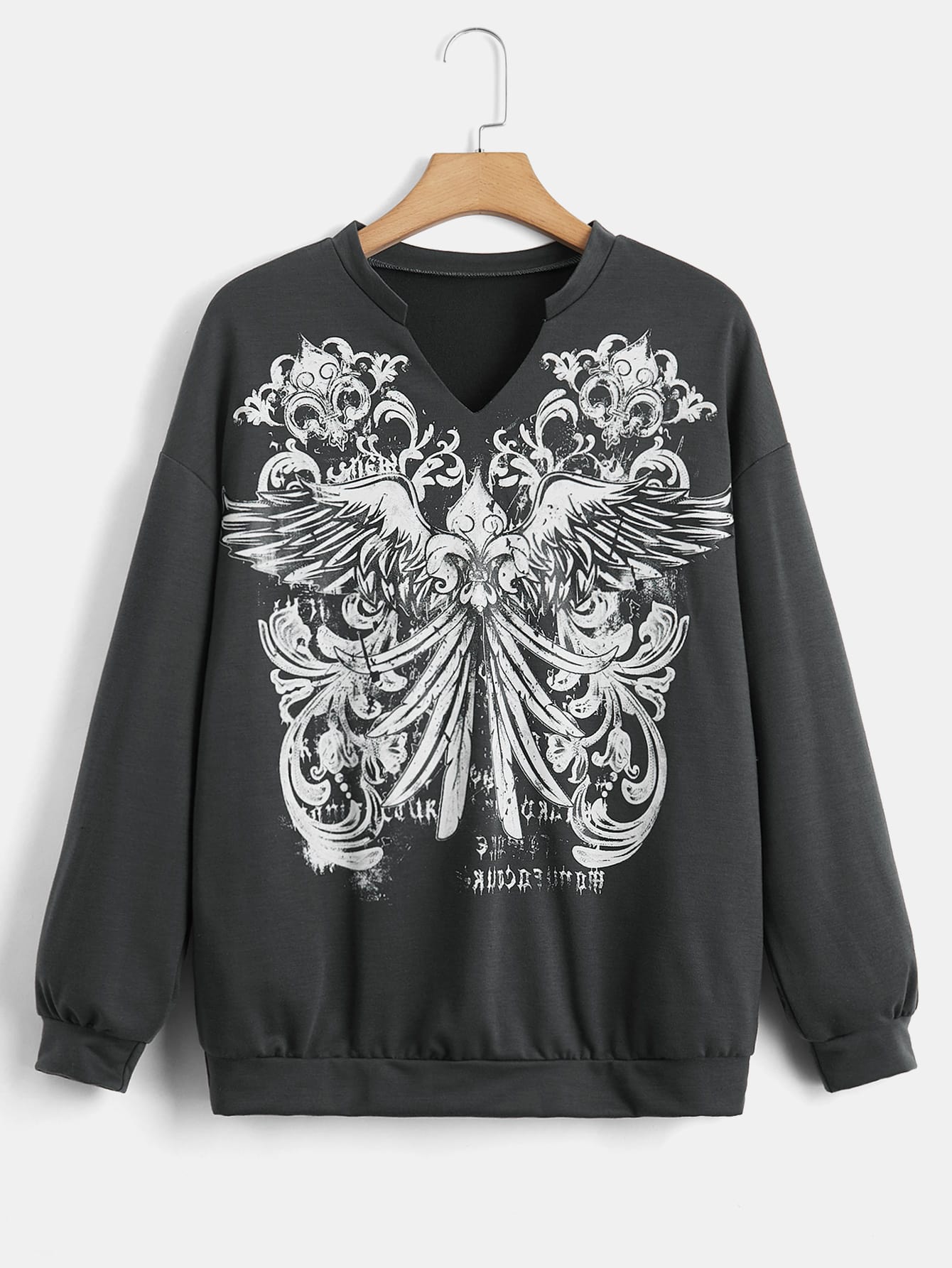 Sudadera con letra ala con estampado de cuello de muesca