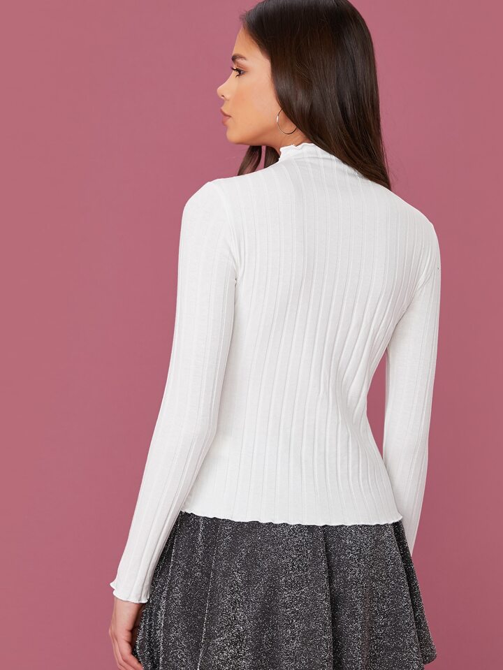 Camiseta unicolor de cuello alto ribete en forma de lechuga