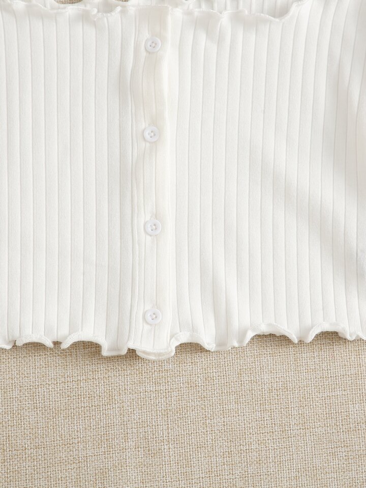 Top tejido de canalé con botón delantero ribete en forma de lechuga