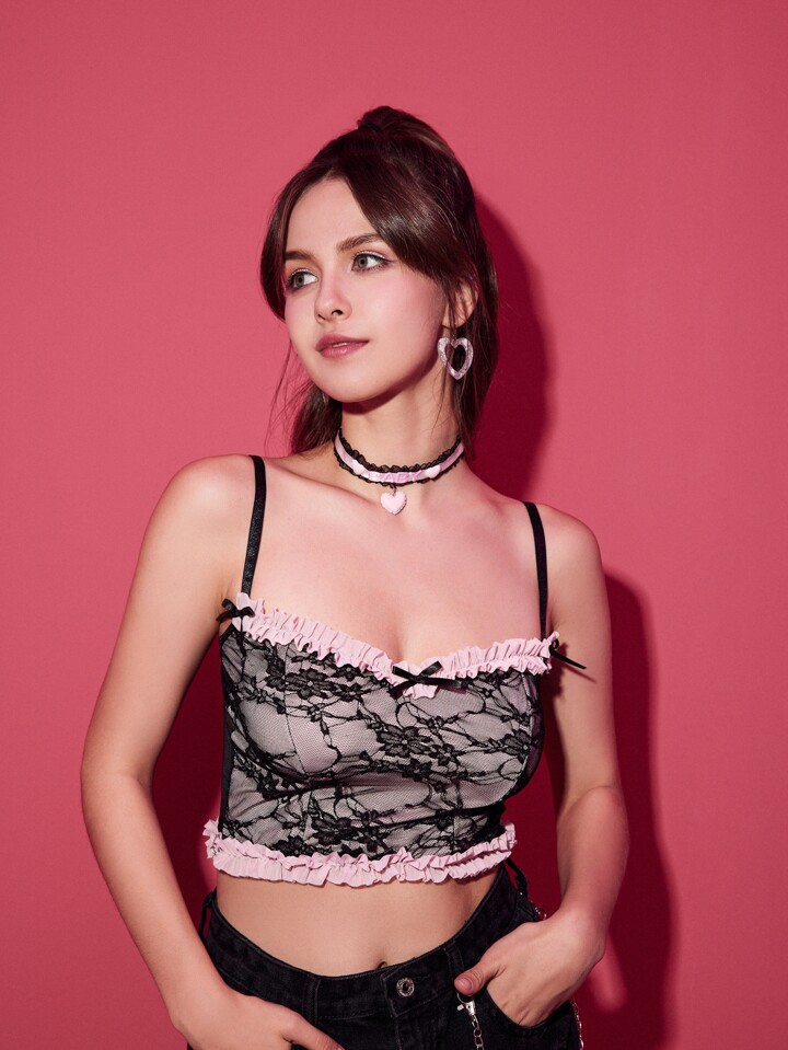 Sujetador ribete en forma de lechuga panel con encaje