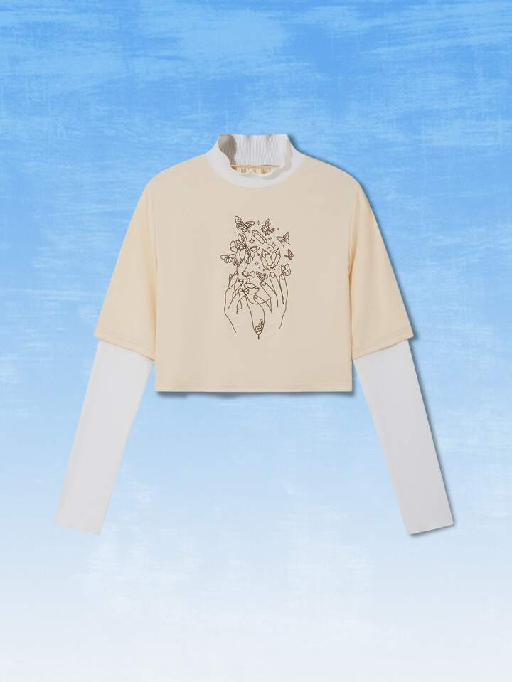 LineHome Camiseta corta 2 en 1 con mariposa & con estampado de mano