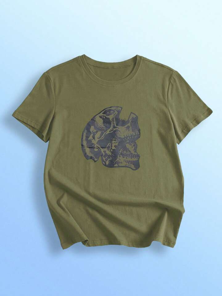 LuCeeya Camiseta de cráneo con estampado de figura