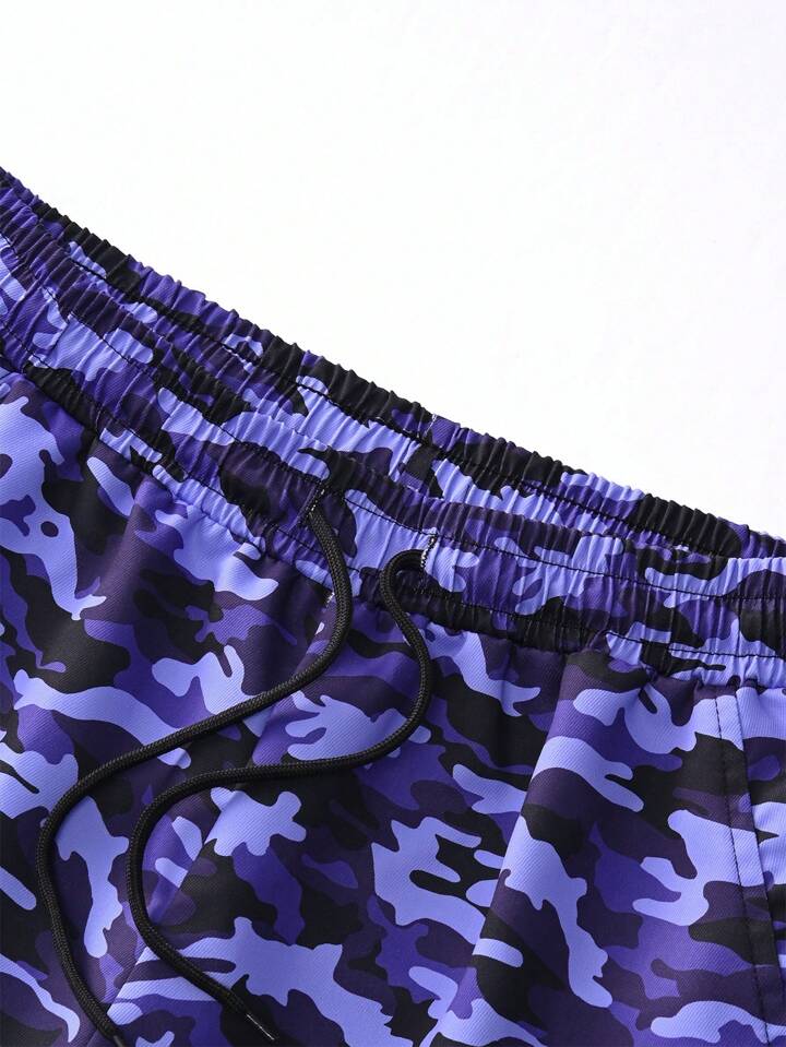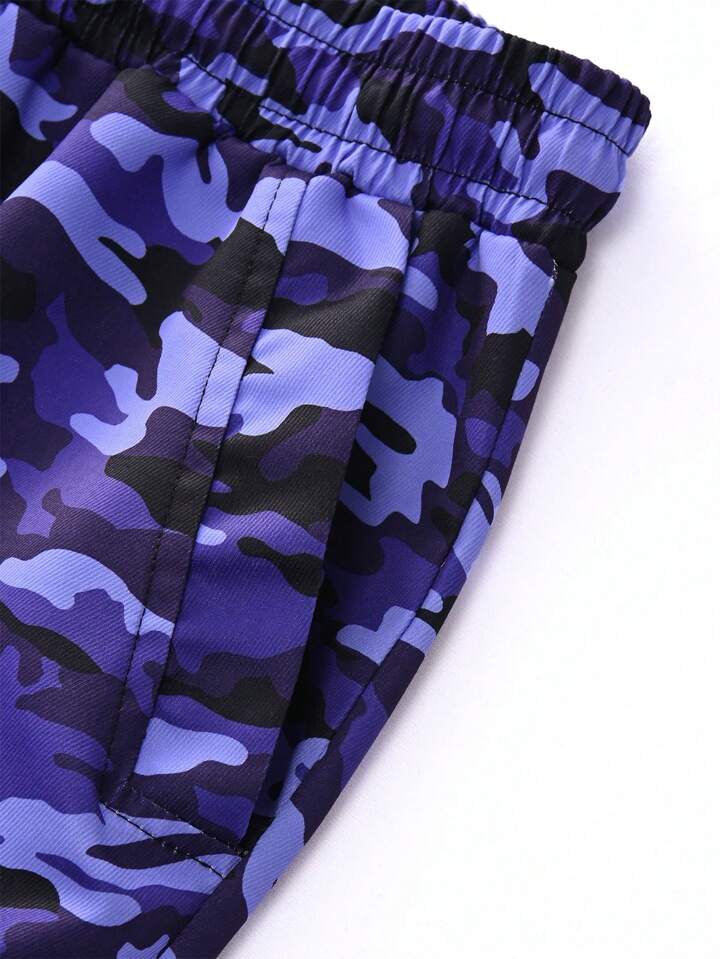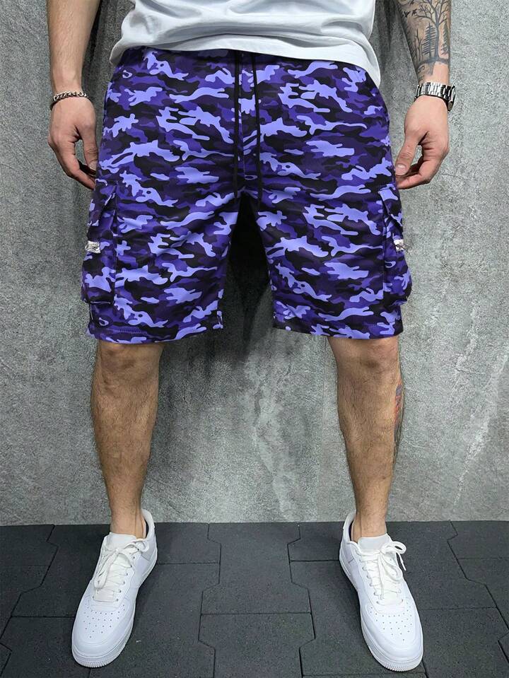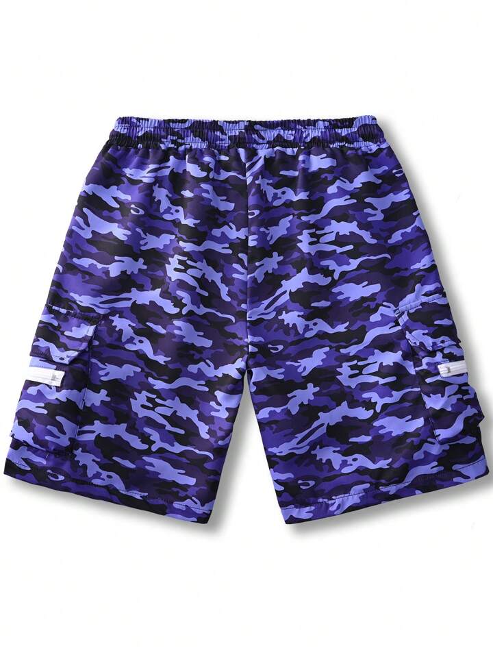 Manfinity Roughcore Shorts Cargo Para Hombres Con Ajuste Holgado, Con Bolsillos Con Solapa Y Cordón En La Cintura, Estampado De Camuflaje