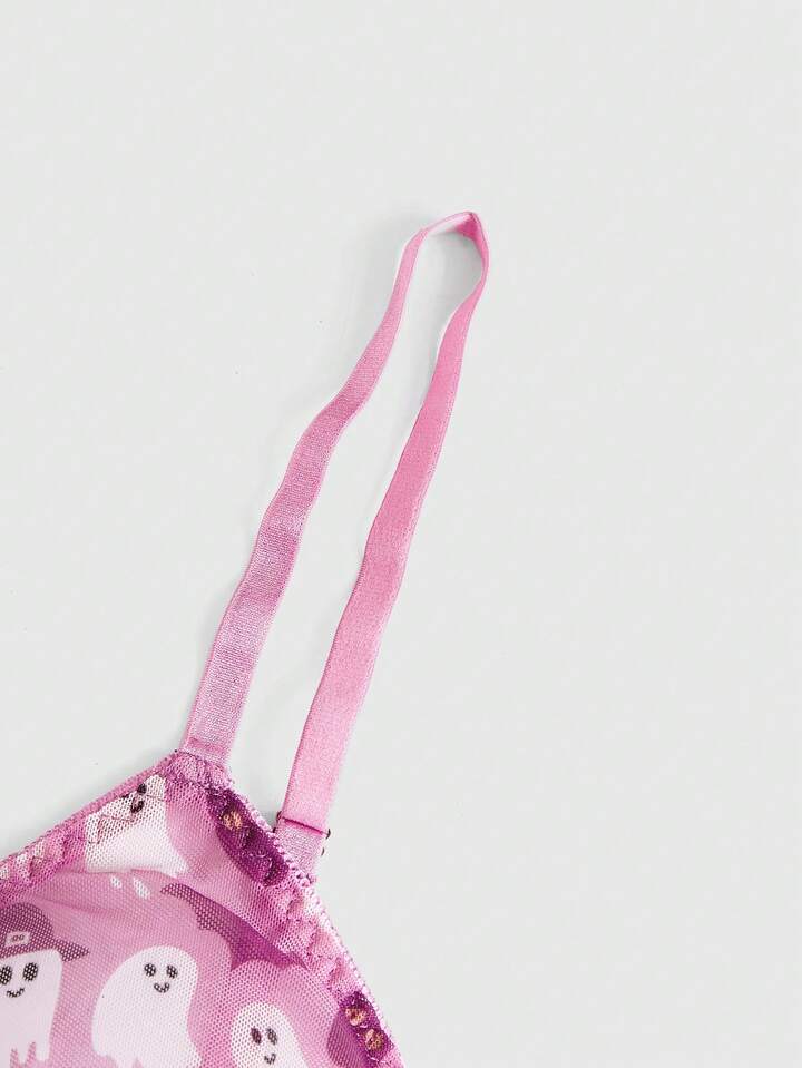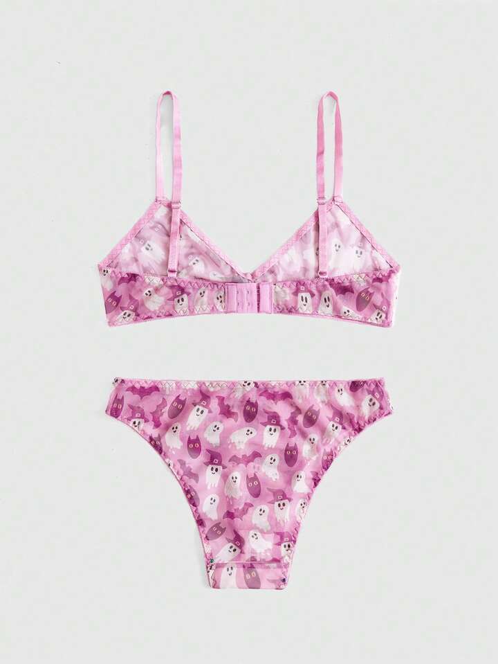 Maryam Alam Set de lencería con estampado de dibujos animados con diseño de lazo