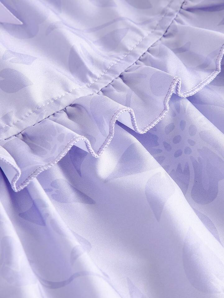 Maryam Alam Vestido con estampado floral de cuello cuadrado de manga farol ribete con fruncido
