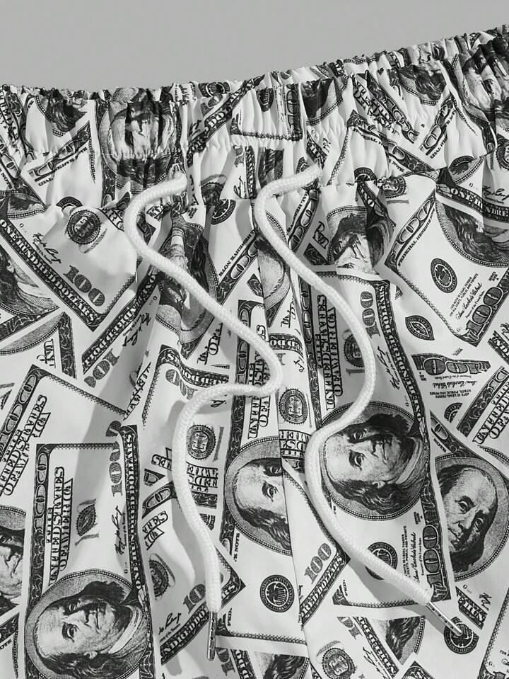 Pantalones cortos con cordón en la cintura con estampado de dólar de todo sobre hombre, escuela