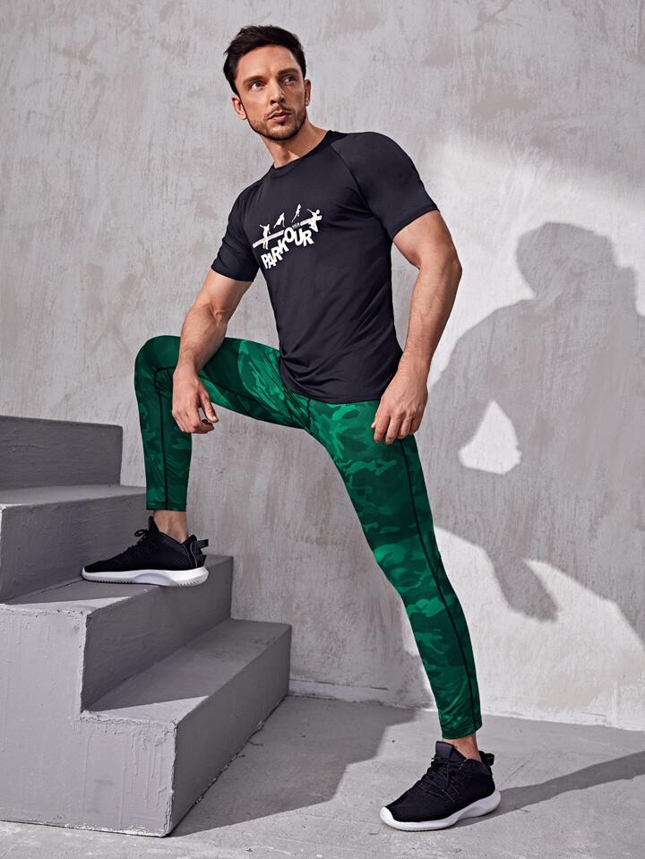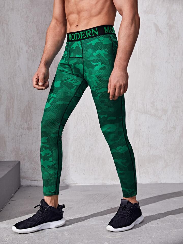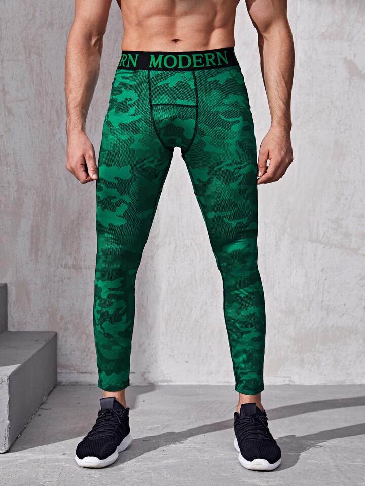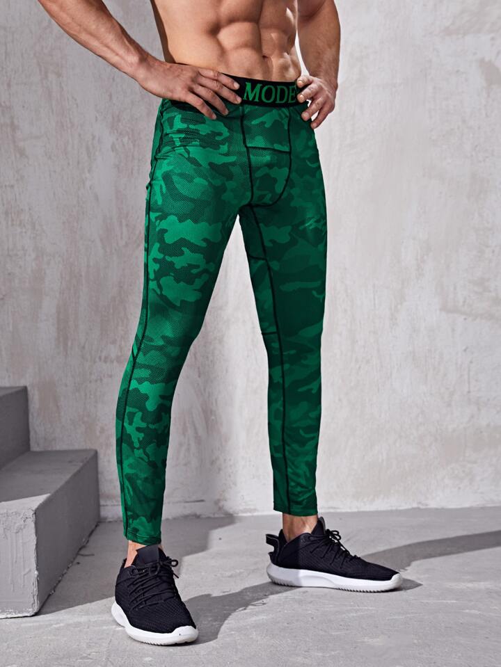 Mallas deportivas con estampado de letras de camuflaje para hombre