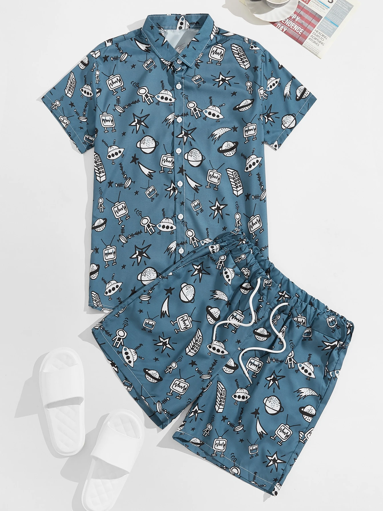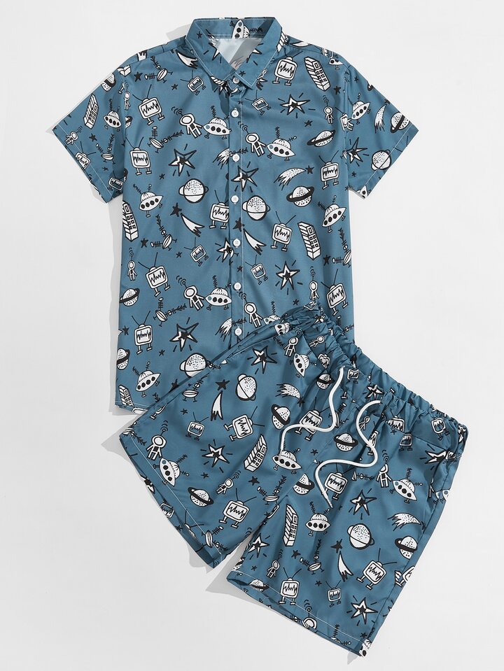 Conjuntos para hombre Bolsillo Dibujos animados Preppy