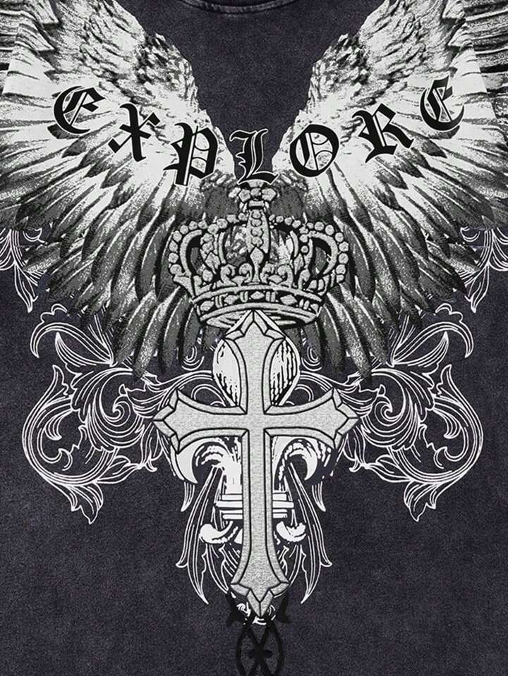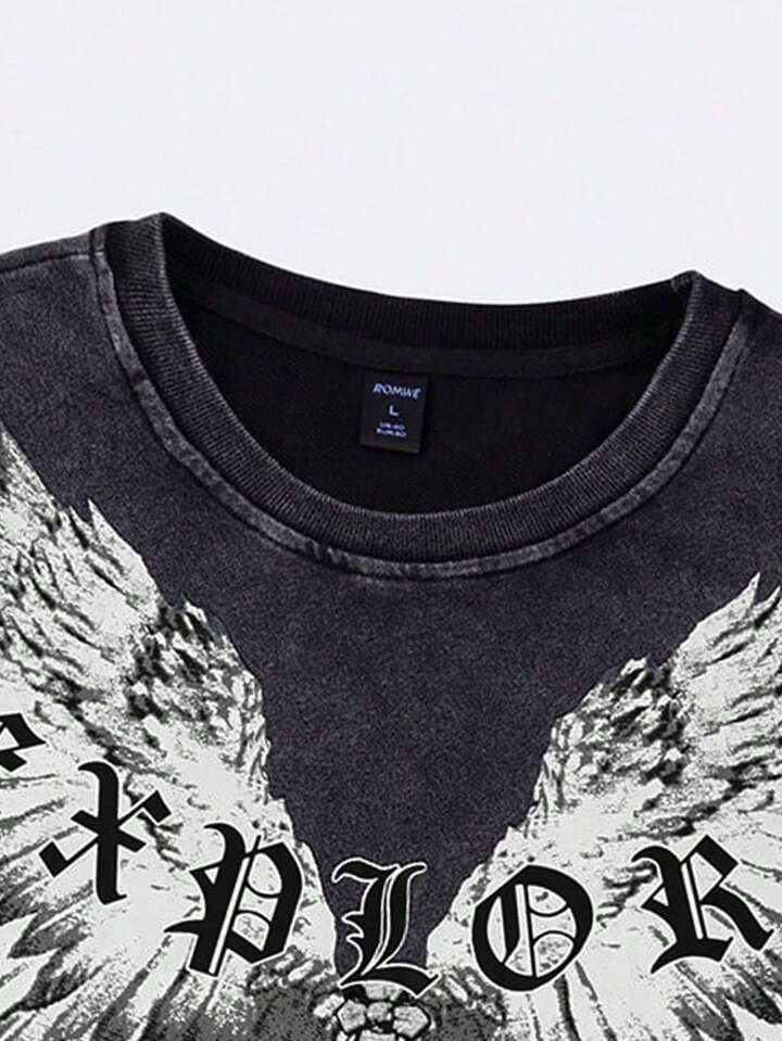 Goth Camiseta de manga corta con estampado lavado de estilo gótico para hombres, verano, Halloween