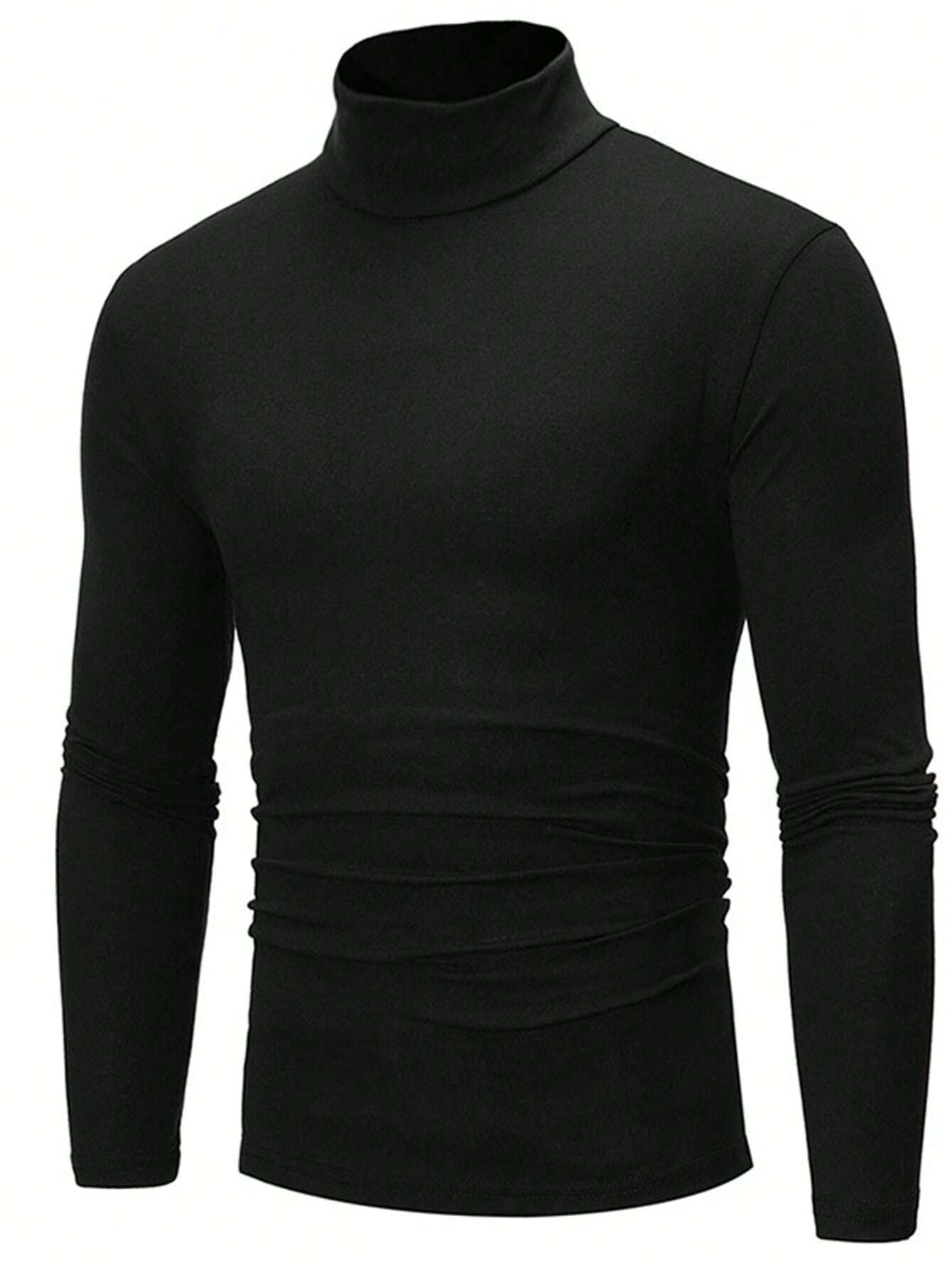 Camiseta de manga larga de cuello alto liso para hombres, para salir