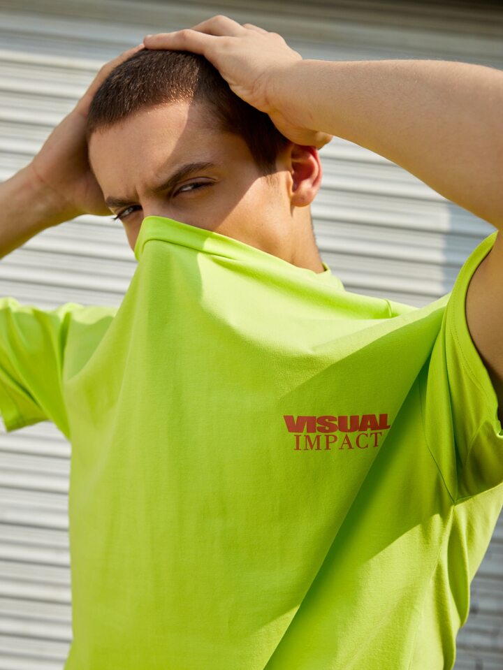 Top con estampado de letras verde fluorescente para hombre sin bolsa