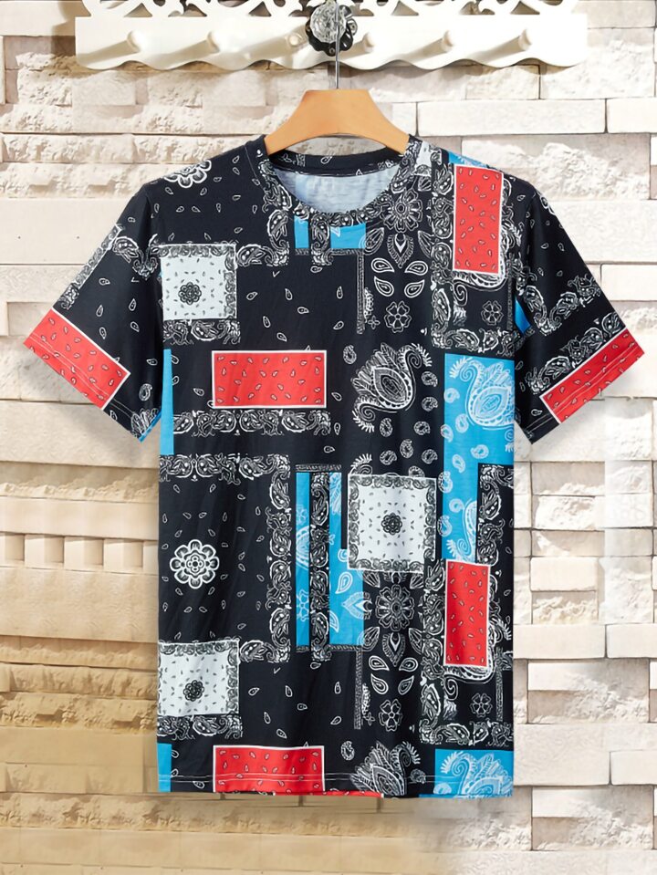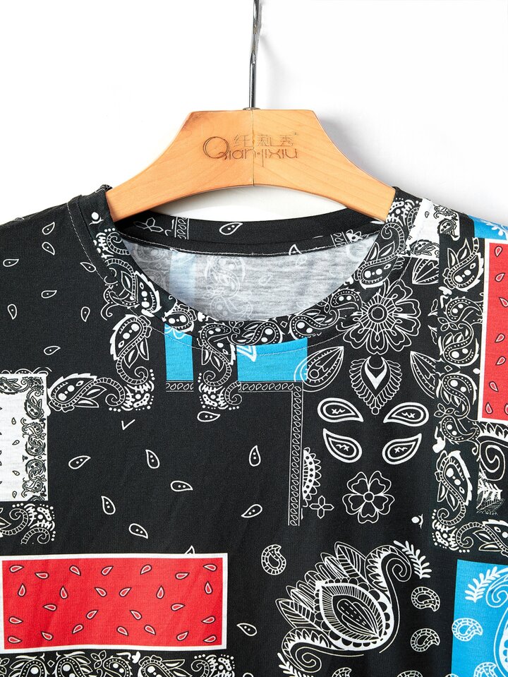 Hombres Camiseta paisley con con estampado de pañuelo