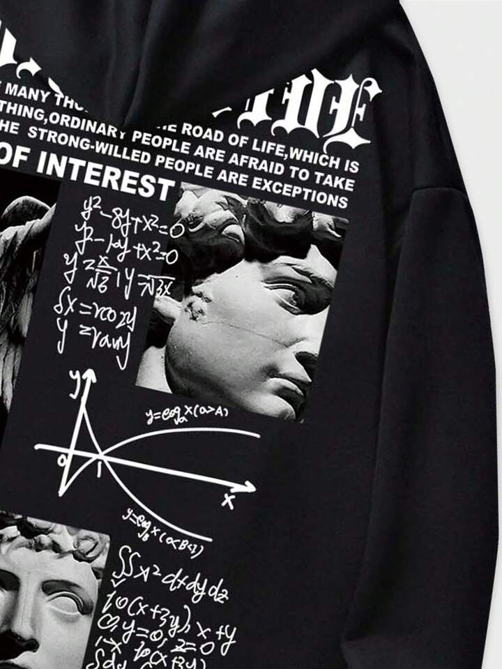 Hombre Sudadera Con Capucha Con Cordón Con Eslogan Y Gráfico De Figuras