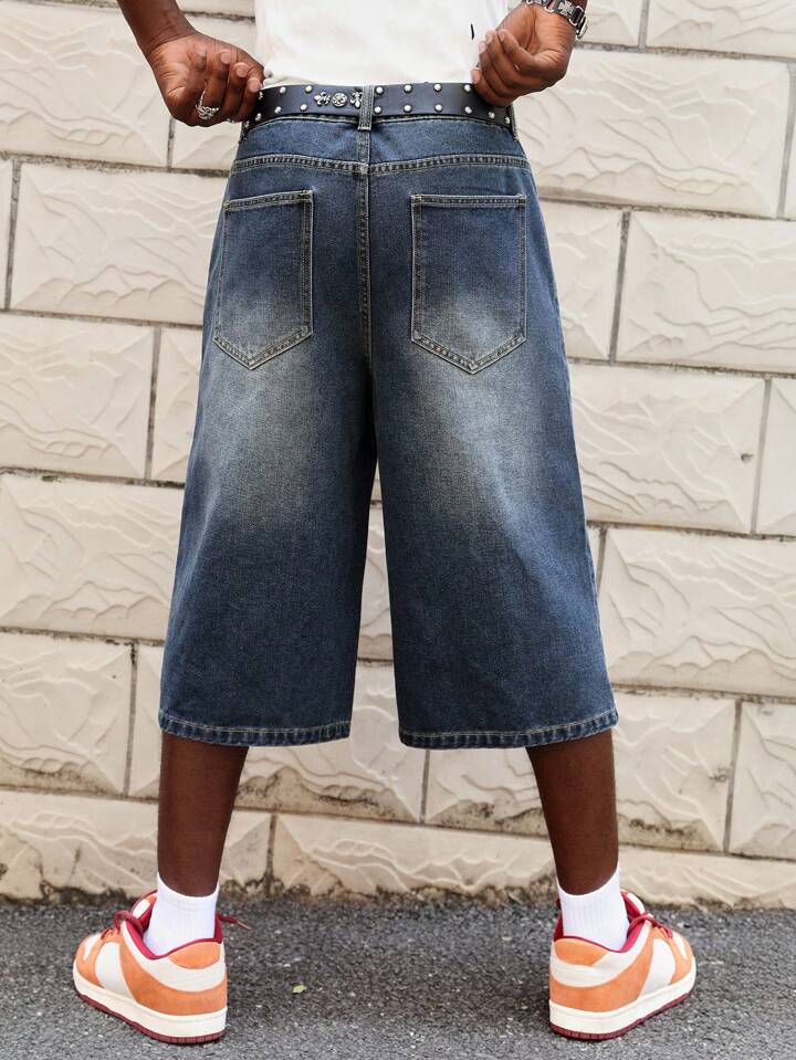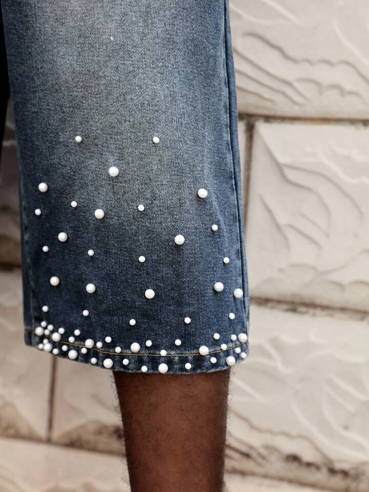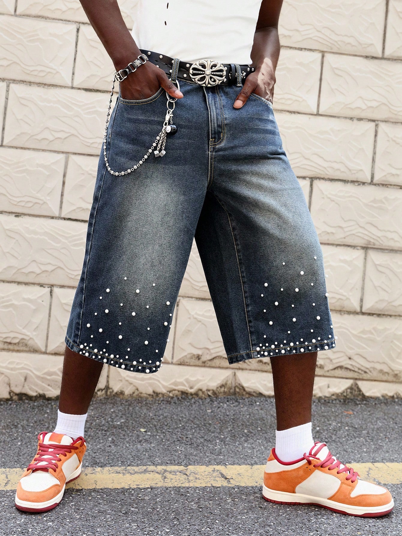 Street Life Jeans de corte holgado para hombre con bolsillos decorados con perlas falsas, casuales