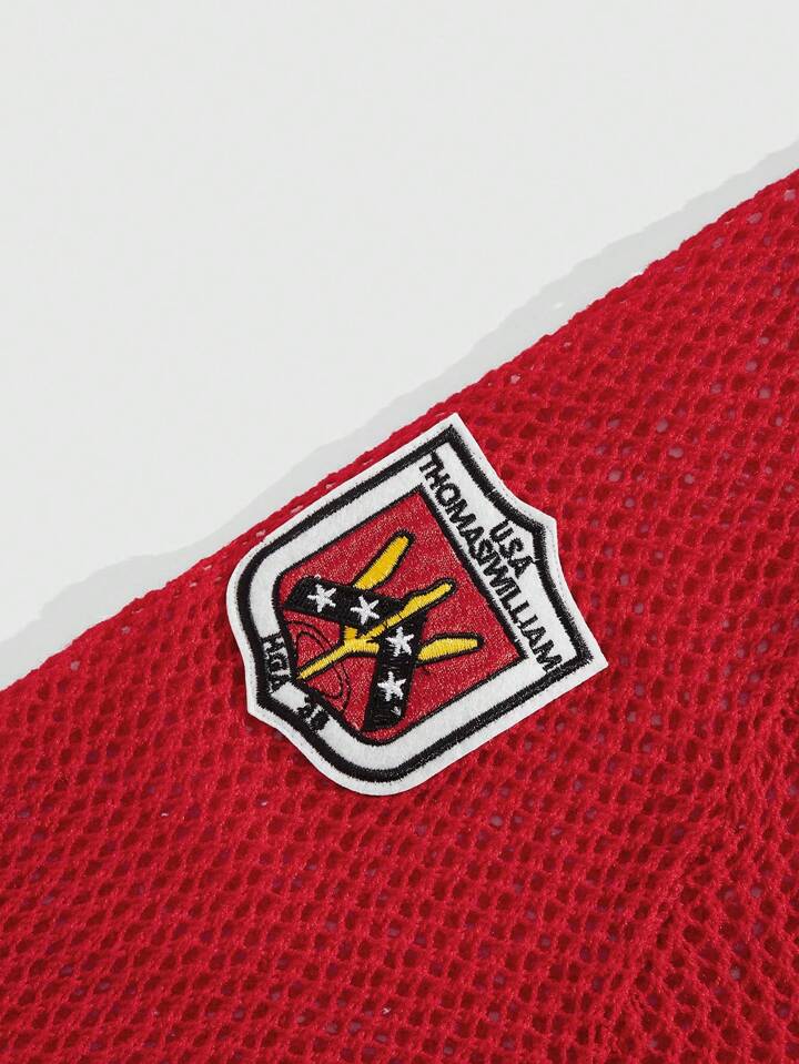Jersey con cuello en V, diseño de letras y parches de detalles para hombres, escuela