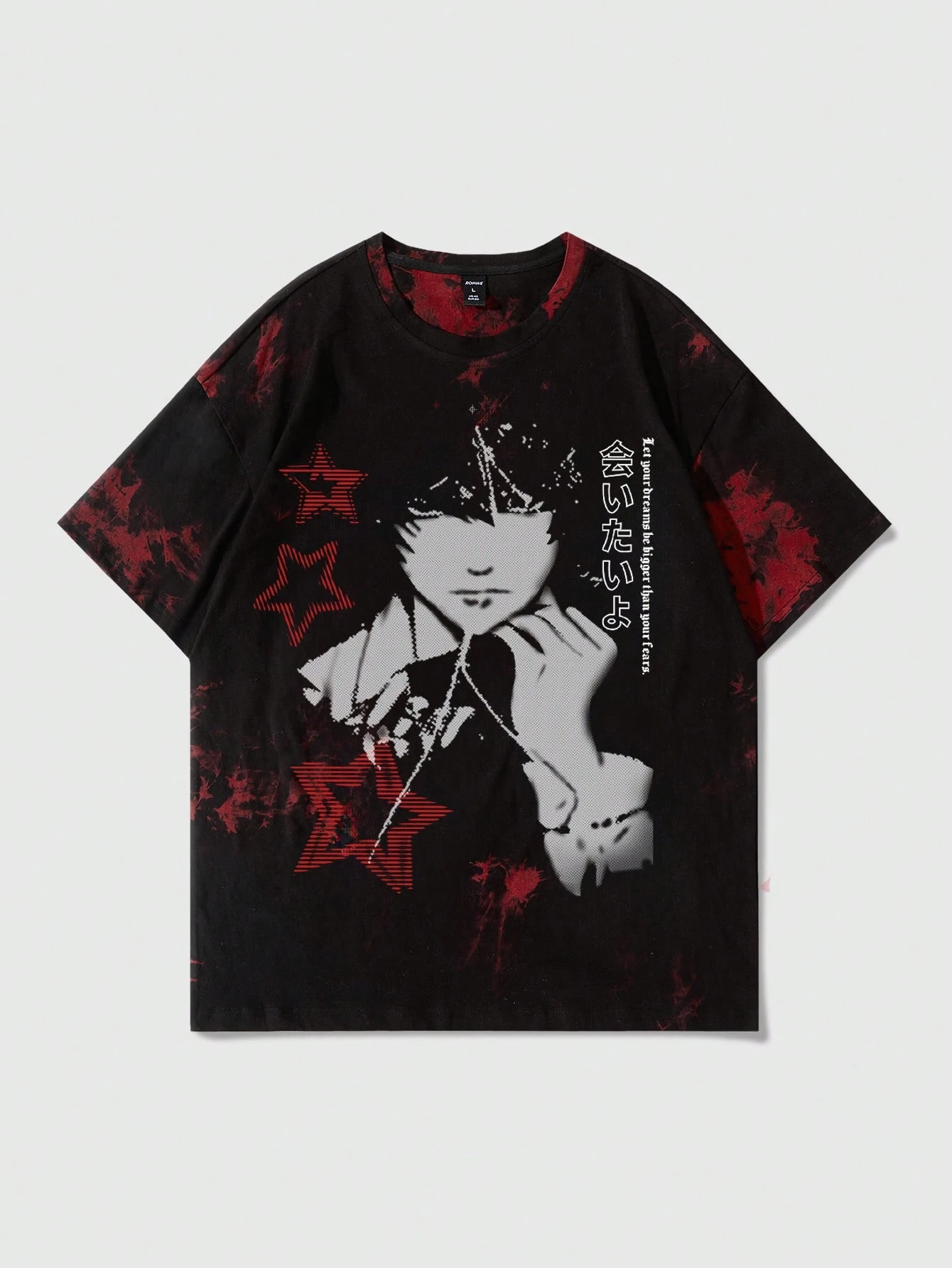 Anime Camiseta de manga corta casual de hombre, prenda de vestir cotidiana de moda minimalista