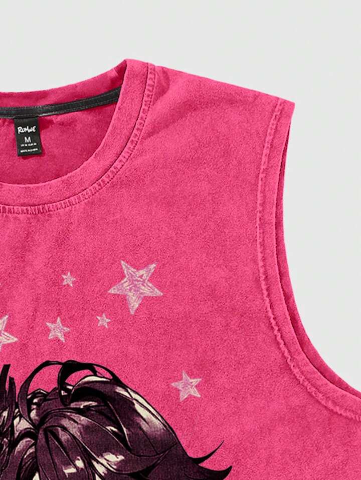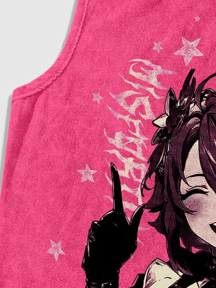 Parte superior sin mangas con estampado de retrato de anime graffiti y lavado de nieve, para verano