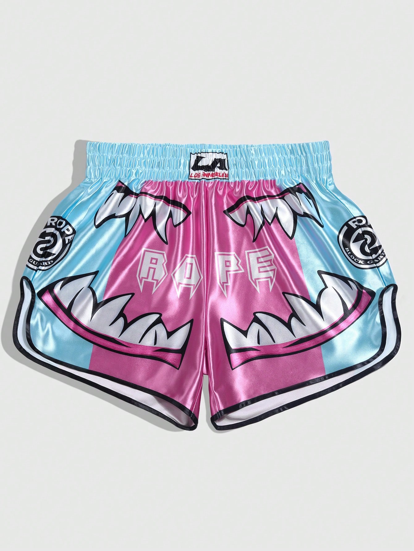 Anime Pantalones cortos de boxeo deportivos con estampado de letras oscuras para hombres